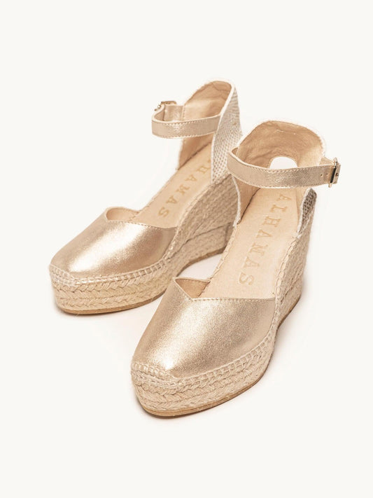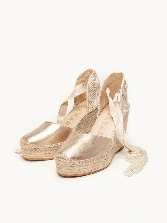 Romero Cuña media en ante metalizado color oro