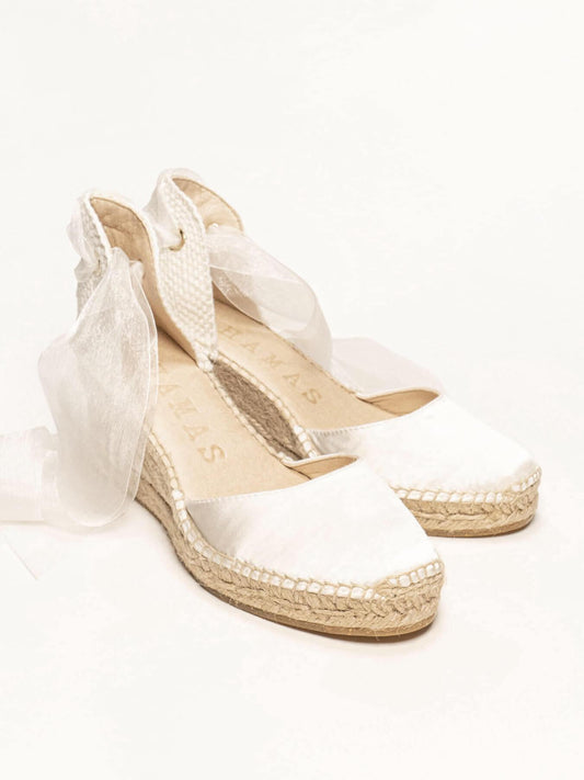 En alpargatas novia con cintas, podrás encontrar: alpargatas novia con cintas cuña alta y alpargatas novia con cintas cuña media y por supuesto disponemos de complementos como cintas de algodón y tul para para que puedas combinar y dar un toque diferencial a tus alpargatas Alhamas y poder llevarlas durante tu día más especial apostando por alpargatas originales, alpargatas artesanales y alpargatas cómodas.