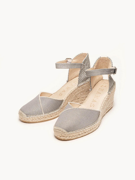 Alhamas es alpargatas cómodas, ya que la plantilla acolchada que hemos puesto en la planta hace que sean las alpargatas más cómodas del mundo. Alpargatas de cuña alta, alpargatas de cuña media, alpargatas de plataforma y alpargatas planas son las 4 alturas que Alhamas tiene en su colección. También podrás encontrar alpargatas con cinta y alpargatas con pulsera, bailarinas, slippers e incluso botas con cuña y botines con cuña de entretiempo. También disponemos de complementos como cintas de algodón para alpargatas de numerosos colores, y también pañuelos, para que puedas combinar y dar un toque diferencial a tus alpargatas Alhamas. Alpargatas cosidas a mano en La Rioja por nuestros maestros artesanos, alpargatas artesanales echas como lo hacían nuestros abuelos durante toda su vida, a fuego lento y puntada a puntada.