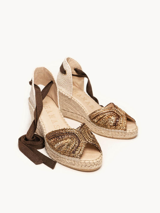 Alhamas es alpargatas cómodas, ya que la plantilla acolchada que hemos puesto en la planta hace que sean las alpargatas más cómodas del mundo. Alpargatas de cuña alta, alpargatas de cuña media, alpargatas de plataforma y alpargatas planas son las 4 alturas que Alhamas tiene en su colección. También podrás encontrar alpargatas con cinta y alpargatas con pulsera, bailarinas, slippers e incluso botas con cuña y botines con cuña de entretiempo. También disponemos de complementos como cintas de algodón para alpargatas de numerosos colores, y también pañuelos, para que puedas combinar y dar un toque diferencial a tus alpargatas Alhamas. Alpargatas cosidas a mano en La Rioja por nuestros maestros artesanos, alpargatas artesanales echas como lo hacían nuestros abuelos durante toda su vida, a fuego lento y puntada a puntada.