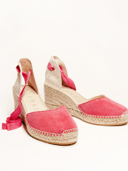 Alhamas es alpargatas cómodas, ya que la plantilla acolchada que hemos puesto en la planta hace que sean las alpargatas más cómodas del mundo. Alpargatas de cuña alta, alpargatas de cuña media, alpargatas de plataforma y alpargatas planas son las 4 alturas que Alhamas tiene en su colección. También podrás encontrar alpargatas con cinta y alpargatas con pulsera, bailarinas, slippers e incluso botas con cuña y botines con cuña de entretiempo. También disponemos de complementos como cintas de algodón para alpargatas de numerosos colores, y también pañuelos, para que puedas combinar y dar un toque diferencial a tus alpargatas Alhamas. Alpargatas cosidas a mano en La Rioja por nuestros maestros artesanos, alpargatas artesanales echas como lo hacían nuestros abuelos durante toda su vida, a fuego lento y puntada a puntada.