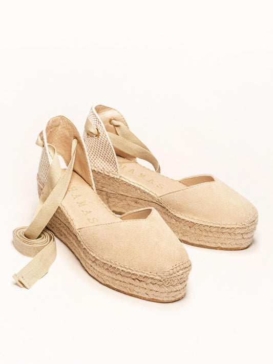 Alhamas es alpargatas cómodas, ya que la plantilla acolchada que hemos puesto en la planta hace que sean las alpargatas más cómodas del mundo. Alpargatas de cuña alta, alpargatas de cuña media, alpargatas de plataforma y alpargatas planas son las 4 alturas que Alhamas tiene en su colección. También podrás encontrar alpargatas con cinta y alpargatas con pulsera, bailarinas, slippers e incluso botas con cuña y botines con cuña de entretiempo. También disponemos de complementos como cintas de algodón para alpargatas de numerosos colores, y también pañuelos, para que puedas combinar y dar un toque diferencial a tus alpargatas Alhamas. Alpargatas cosidas a mano en La Rioja por nuestros maestros artesanos, alpargatas artesanales echas como lo hacían nuestros abuelos durante toda su vida, a fuego lento y puntada a puntada.