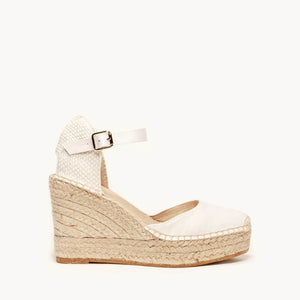 Romero Cuña Media Plataforma Rafia Flores Blanco