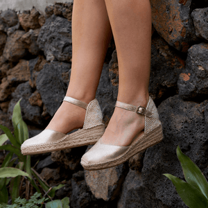 Nuestras alpargatas de cuña media son súper cómodas! Alpargatas artesanales cosidas a mano en la Rioja por nuestros maestros artesanos, alpargatas sostenibles, con materiales reciclados, naturales, orgánicos y una selección de las mejores pieles certificadas por el "Leather Working Group". Alpargatas cuña media cómodas gracias a la plantilla acolchada que cubre toda la planta. Alpargatas cómodas con cuña de 7 centímetros que llevarás durante todo el día. Las alpargatas con un toque rural chic, atemporales, de fondo de armario, con un punto de color y originalidad.