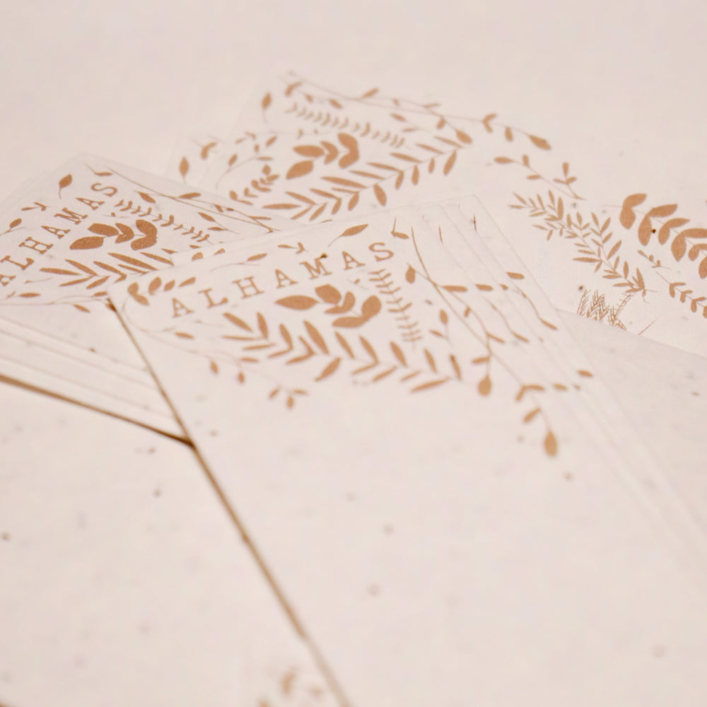 Aunque no queremos desvelar todo el contenido de nuestra caja, en el interior recibiras una sorpresa hecha con papel de semillas. Se trata de un papel fabricado artesanalmente con fibras de algodón, mediante el método tradicional para el refinado de las fibras.