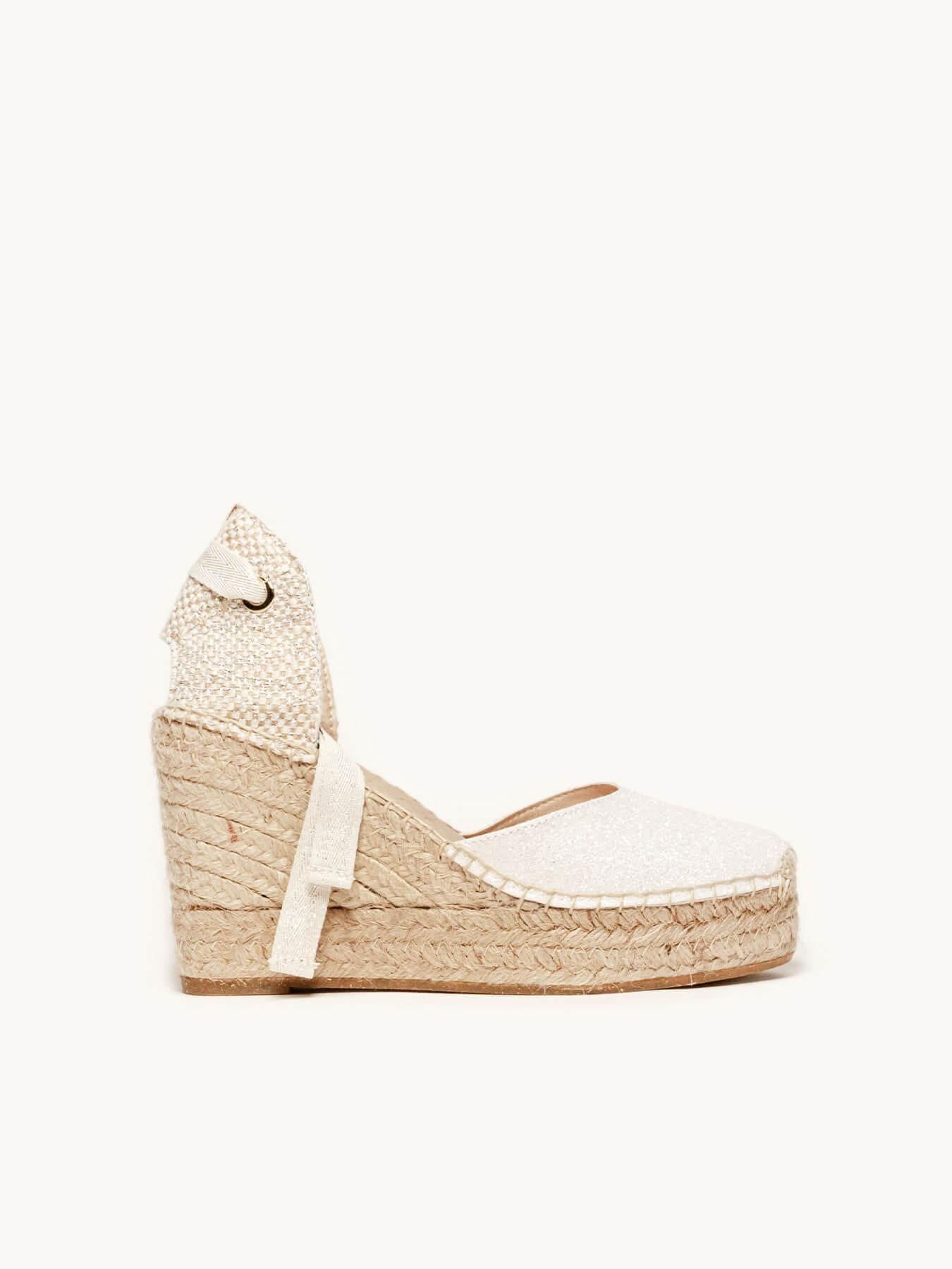 La alpargata de cuña alta Cala, es uno de nuestros modelos más especiales, perfecto para tu día. Las alpargatas de novia que podrás elegir como primera opción o como alpargatas de cambio. Conservarás la altura, sus cintas darán ese toque especial a tu vestido y llevarás las alpargatas cómodas que te permitirán disfrutar al máximo.