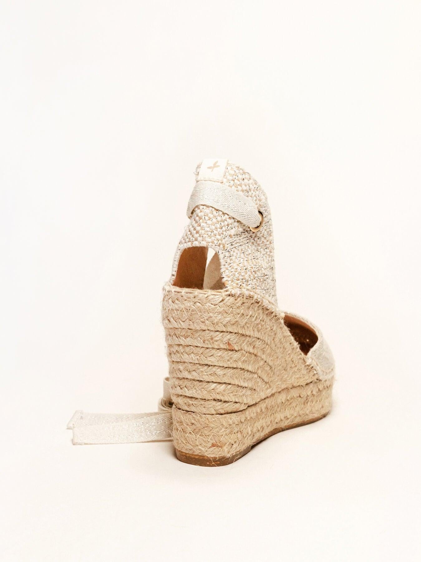 - Cuña de trenza de Yute natural con suela de goma reciclada mezclada con fibras naturales.