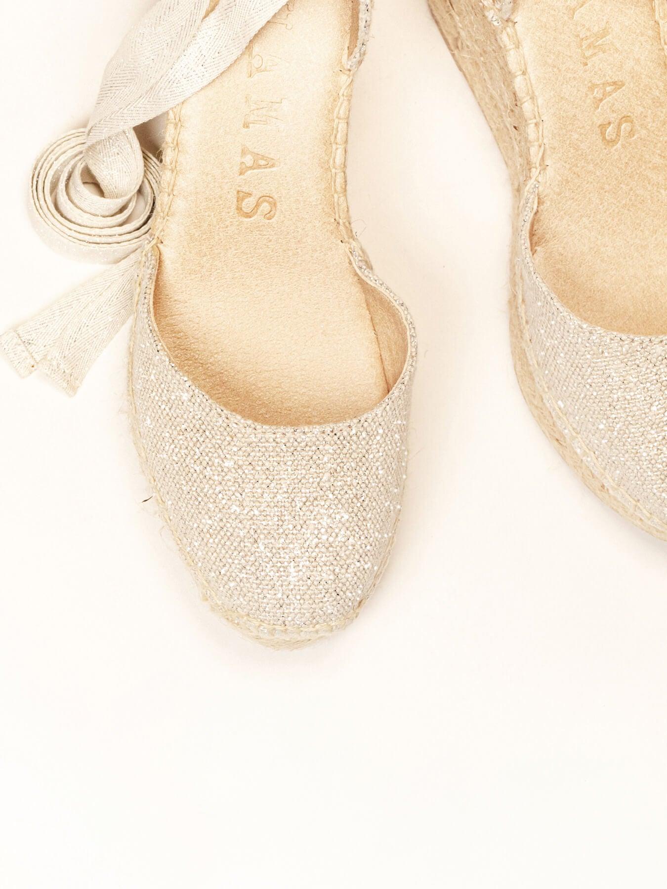 La alpargata de cuña alta Cala, es uno de nuestros modelos más especiales, perfecto para tu día. Las alpargatas de novia que podrás elegir como primera opción o como alpargatas de cambio. Conservarás la altura, sus cintas darán ese toque especial a tu vestido y llevarás las alpargatas cómodas que te permitirán disfrutar al máximo.