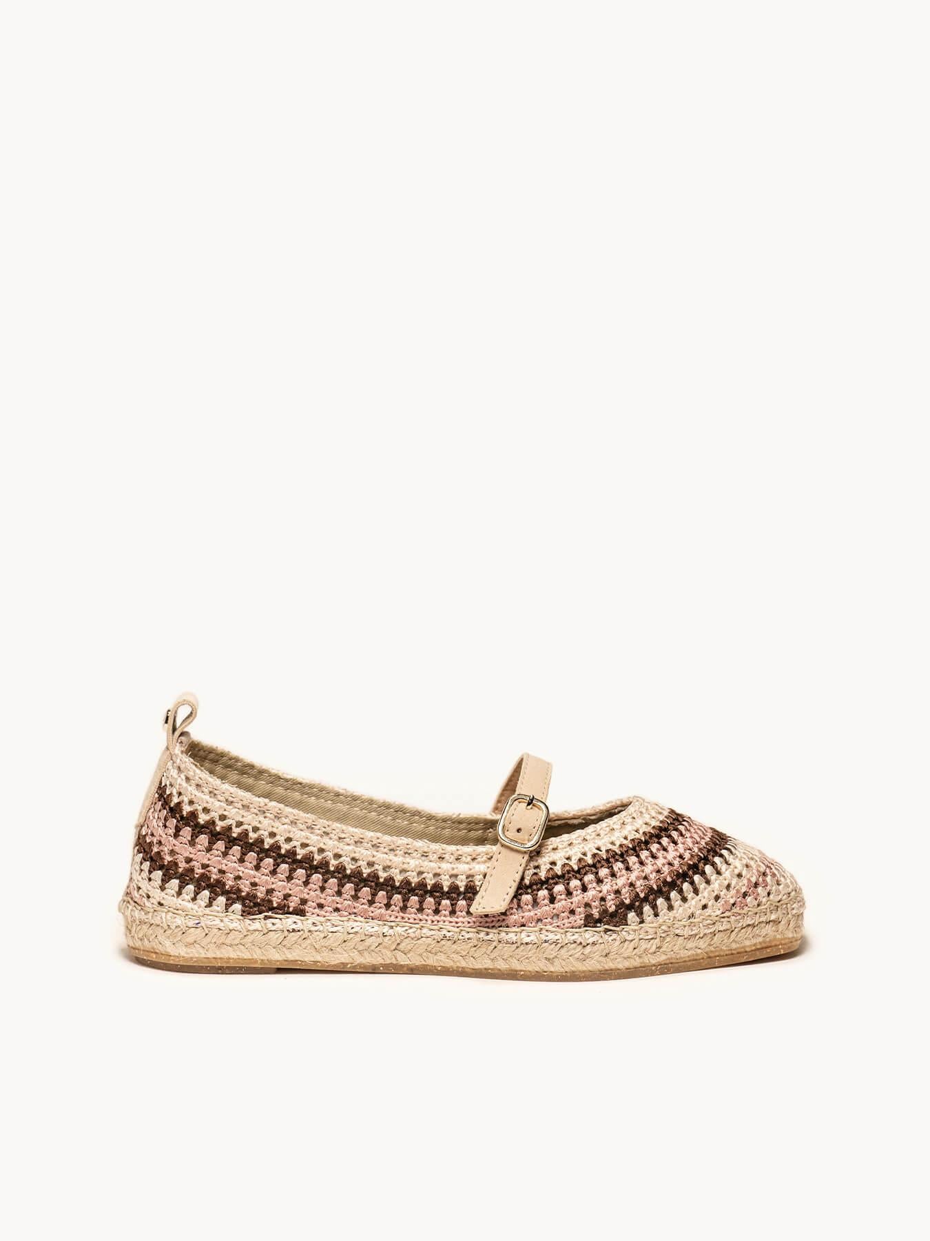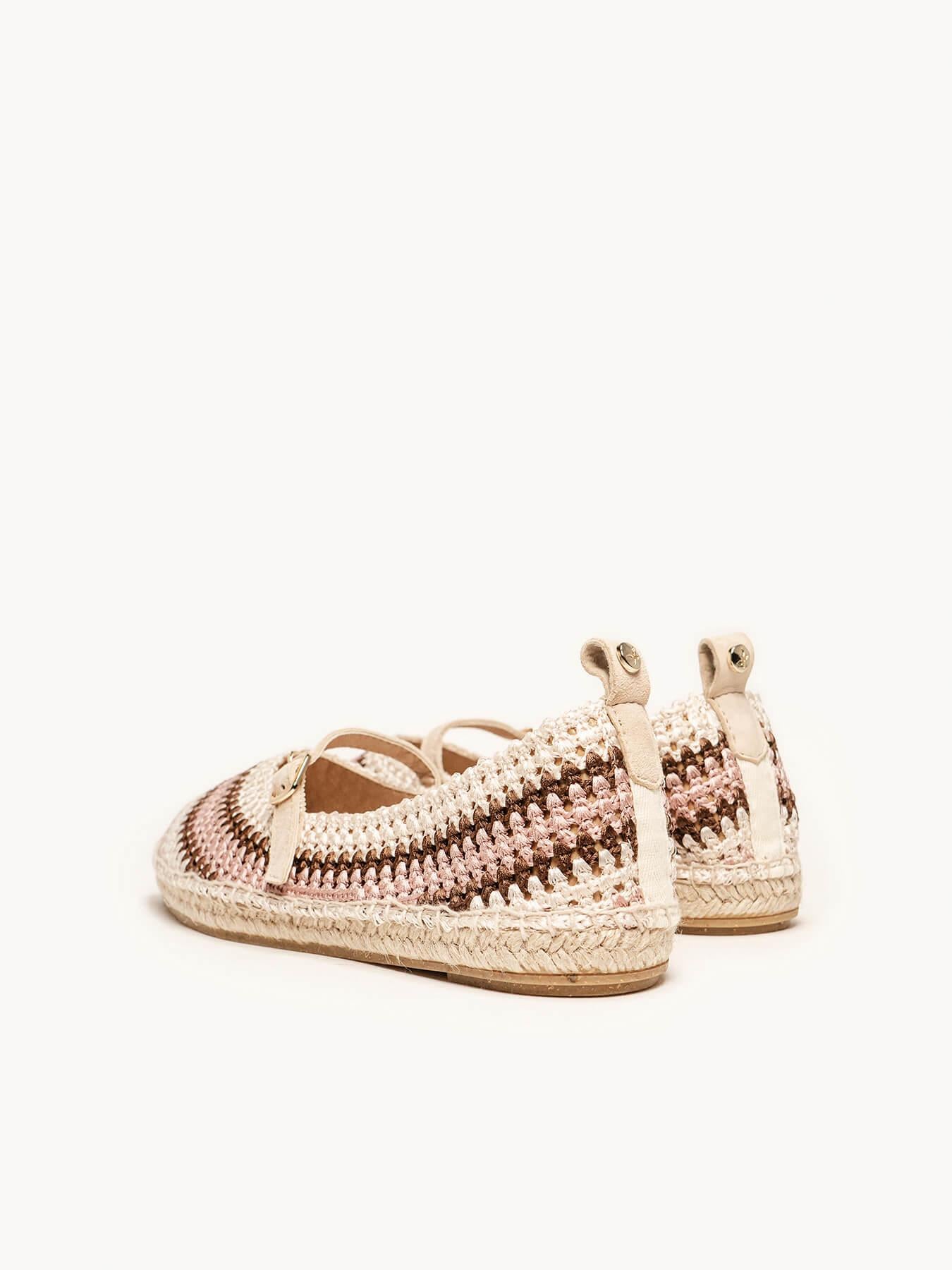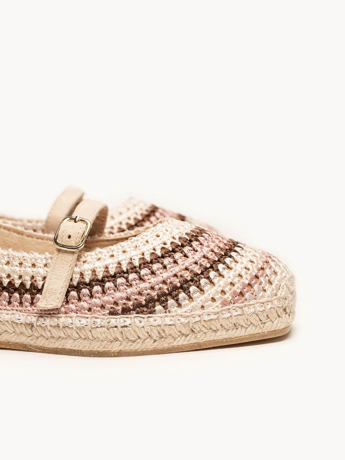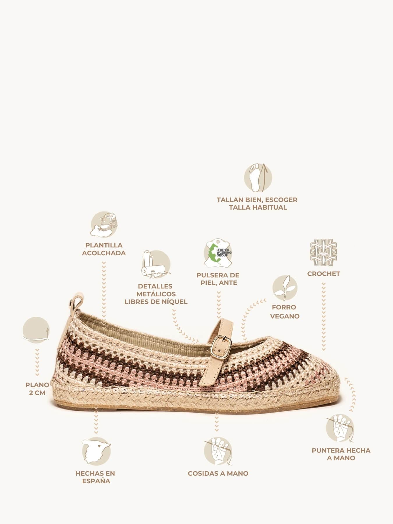 - El crochet de la alpargata Campanilla es de terileno y traba de piel.