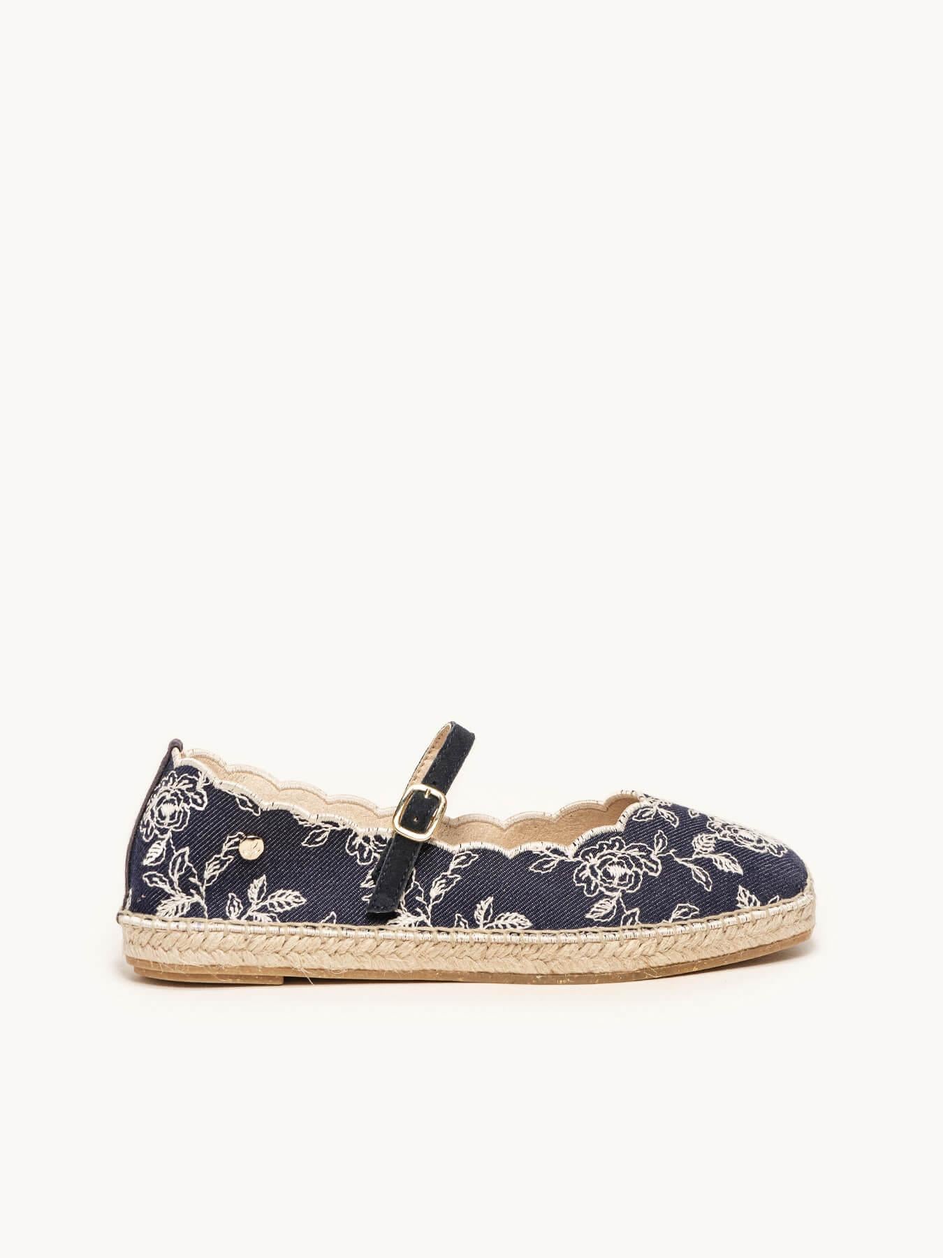 - El tejido de la alpargata Campanilla es de algodón y poliéster reciclado combinado con traba de piel.