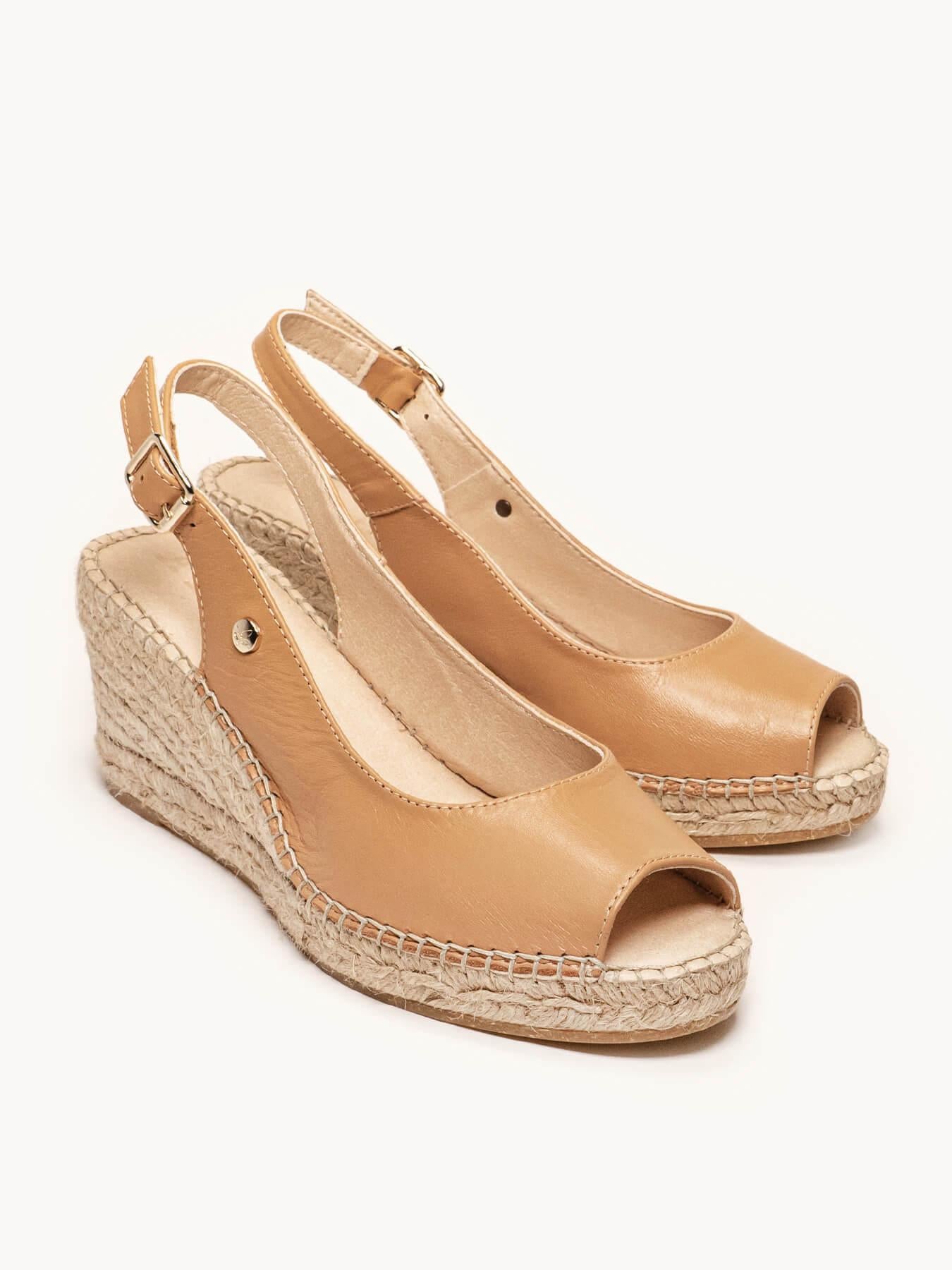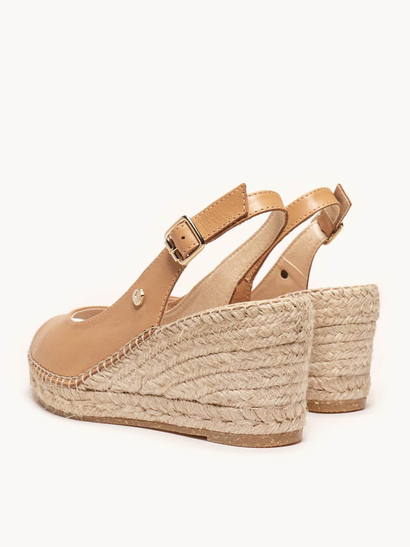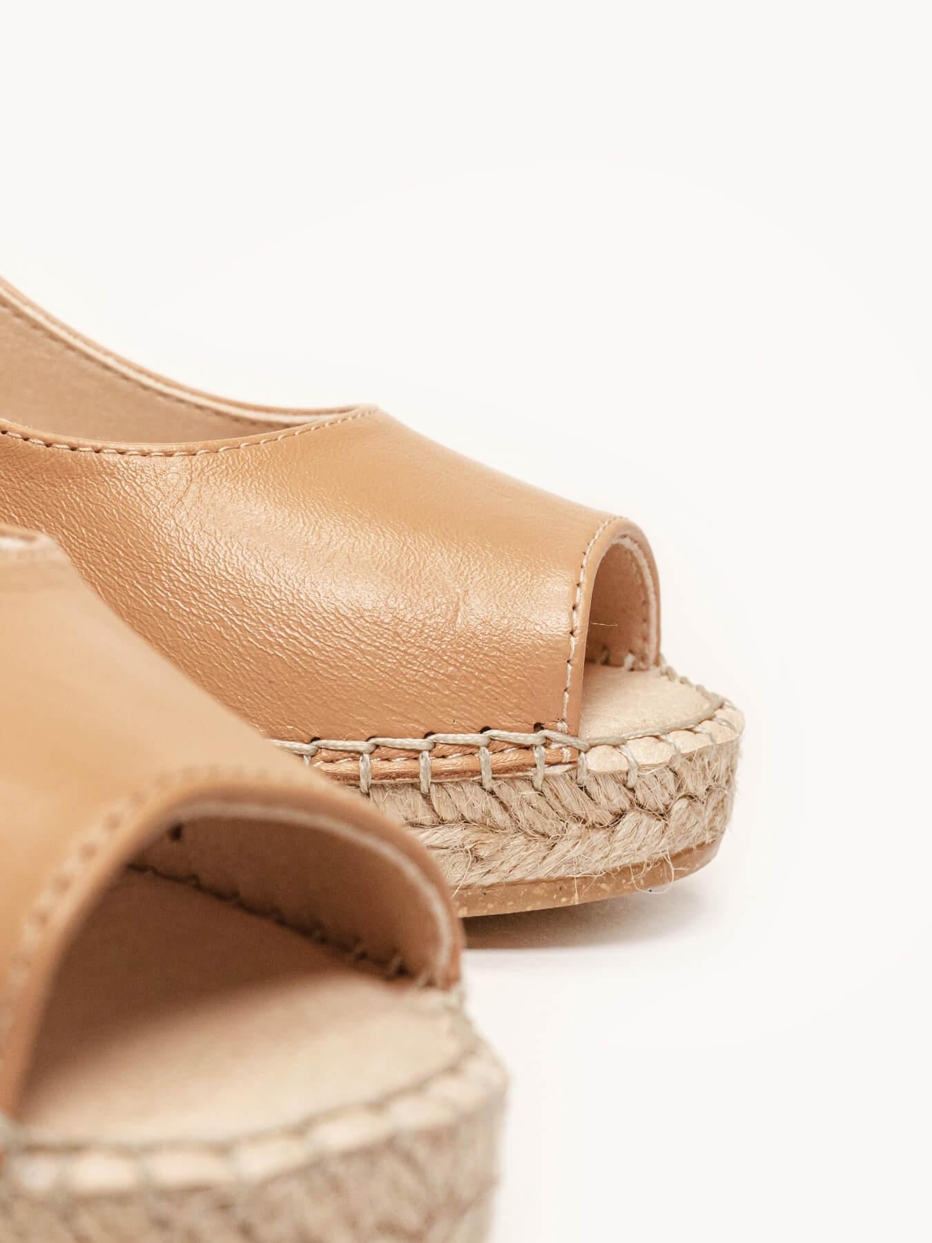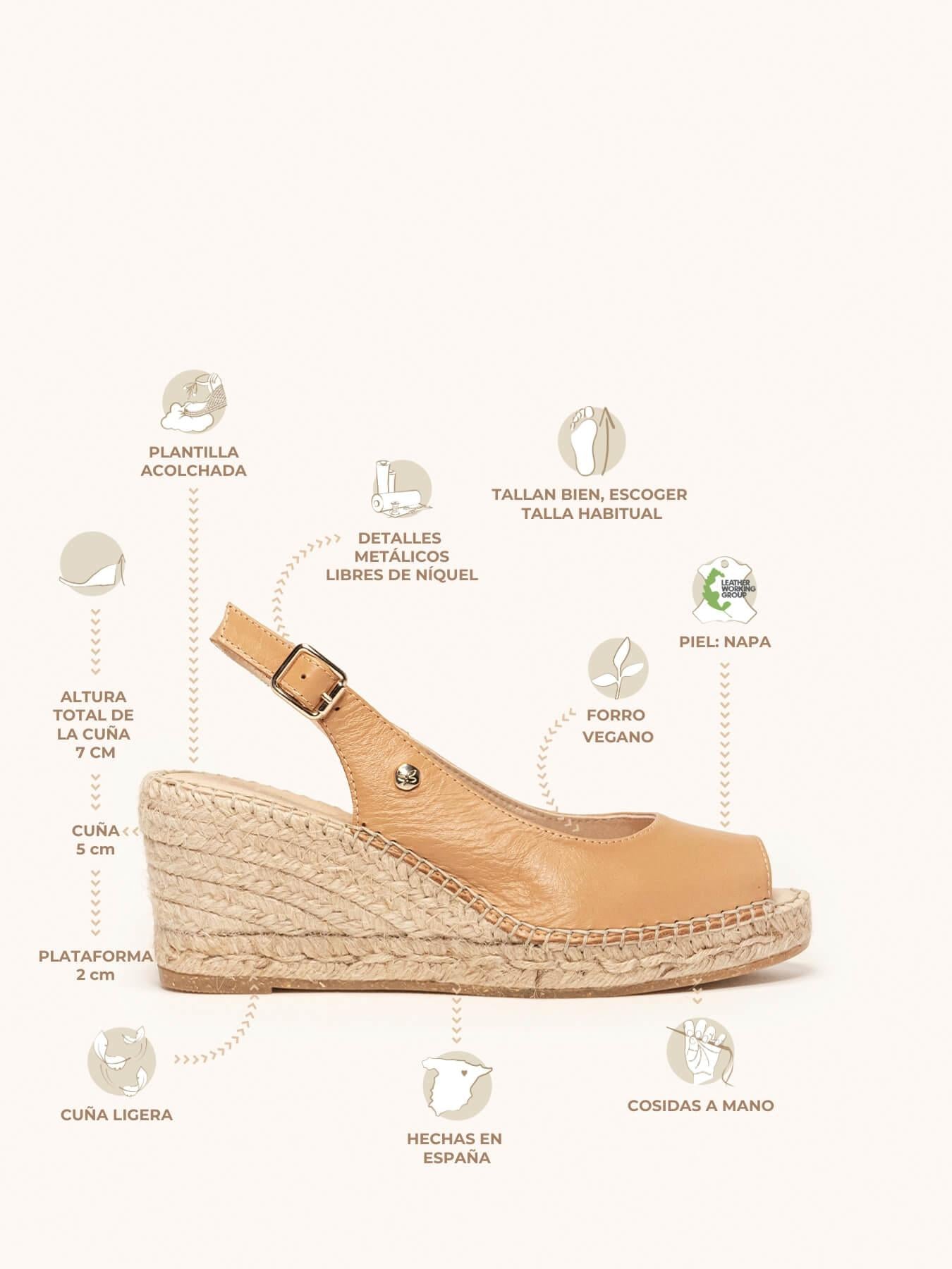 - La Napa de la alpargata Clavel está certificada por el Leather Working Group (una organización que promueve prácticas ambientales sostenibles). El forro y la plantilla son de microfibra transpirable y antibacteriana. Cuña de trenza de yute natural con suela de goma reciclada mezclada con fibras naturales. Elementos metálicos libres de níquel. Hilo de algodón cosido a mano.