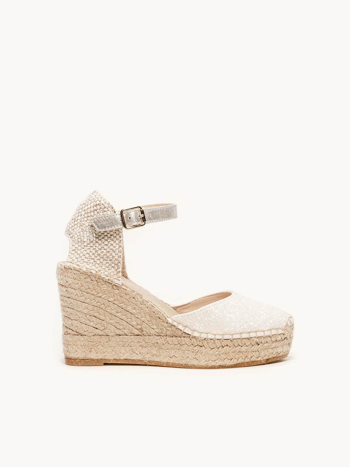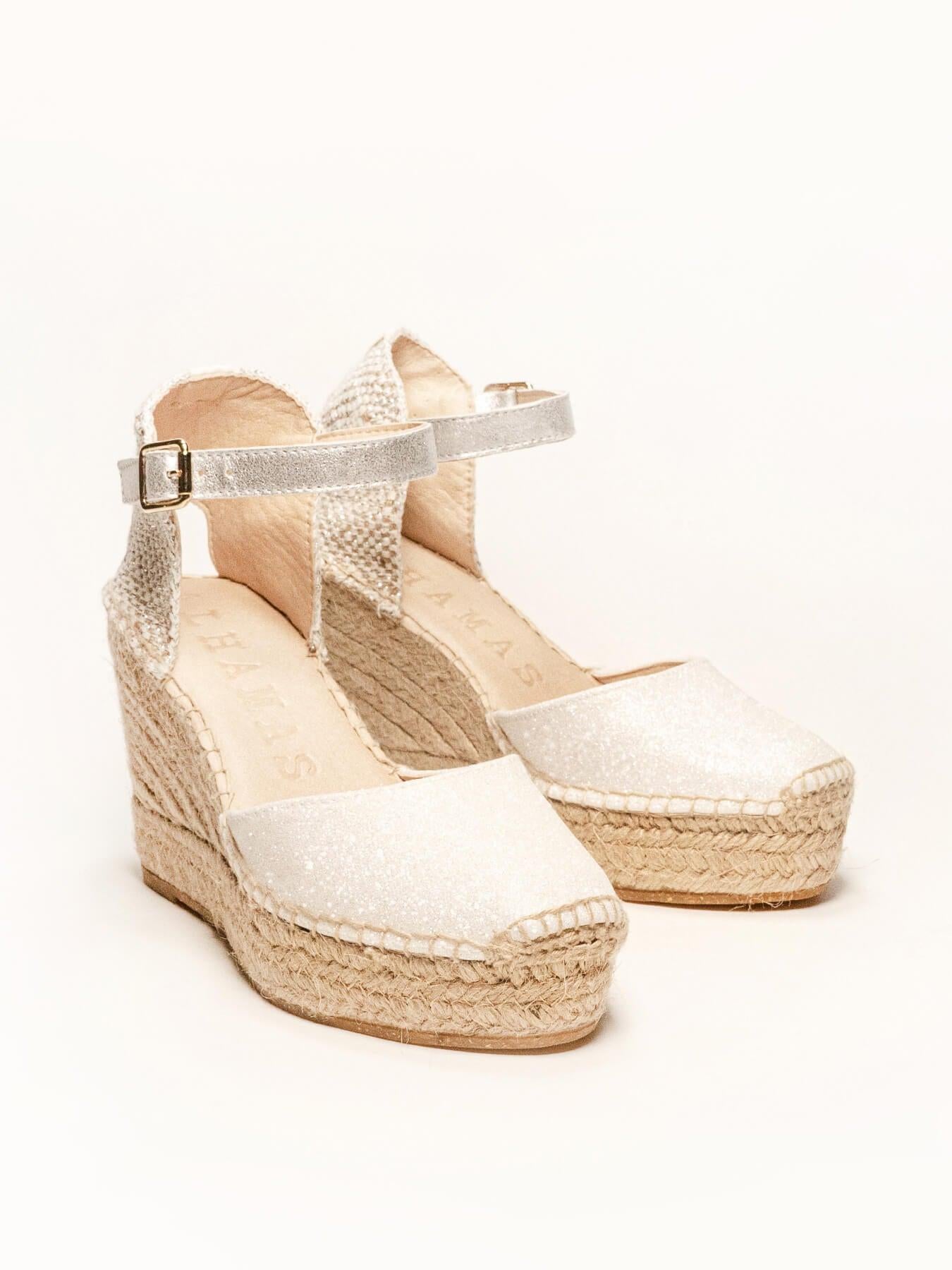 La alpargata de cuña alta Dalia, es uno de nuestros modelos más especiales, perfecto para tu día. Las alpargatas de novia que podrás elegir como primera opción o como alpargatas de cambio. Conservarás la altura, gracias a su pulsera las llevarás bien sujetas a tu pie y llevarás las alpargatas cómodas que te permitirán disfrutar al máximo.