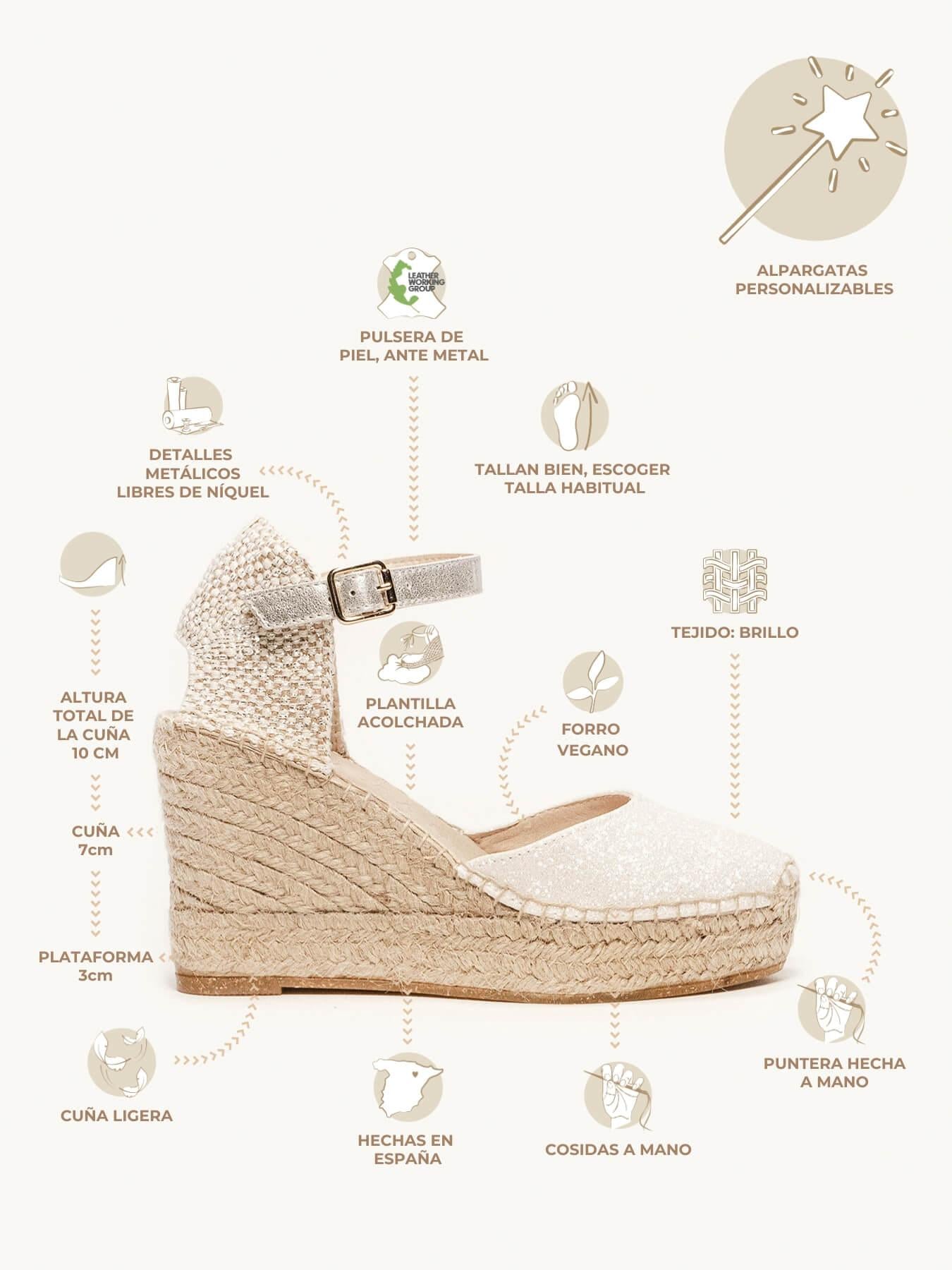Alpargata Cuña Alta: 10 cm totales (3 de plataforma + 7 de cuña).
