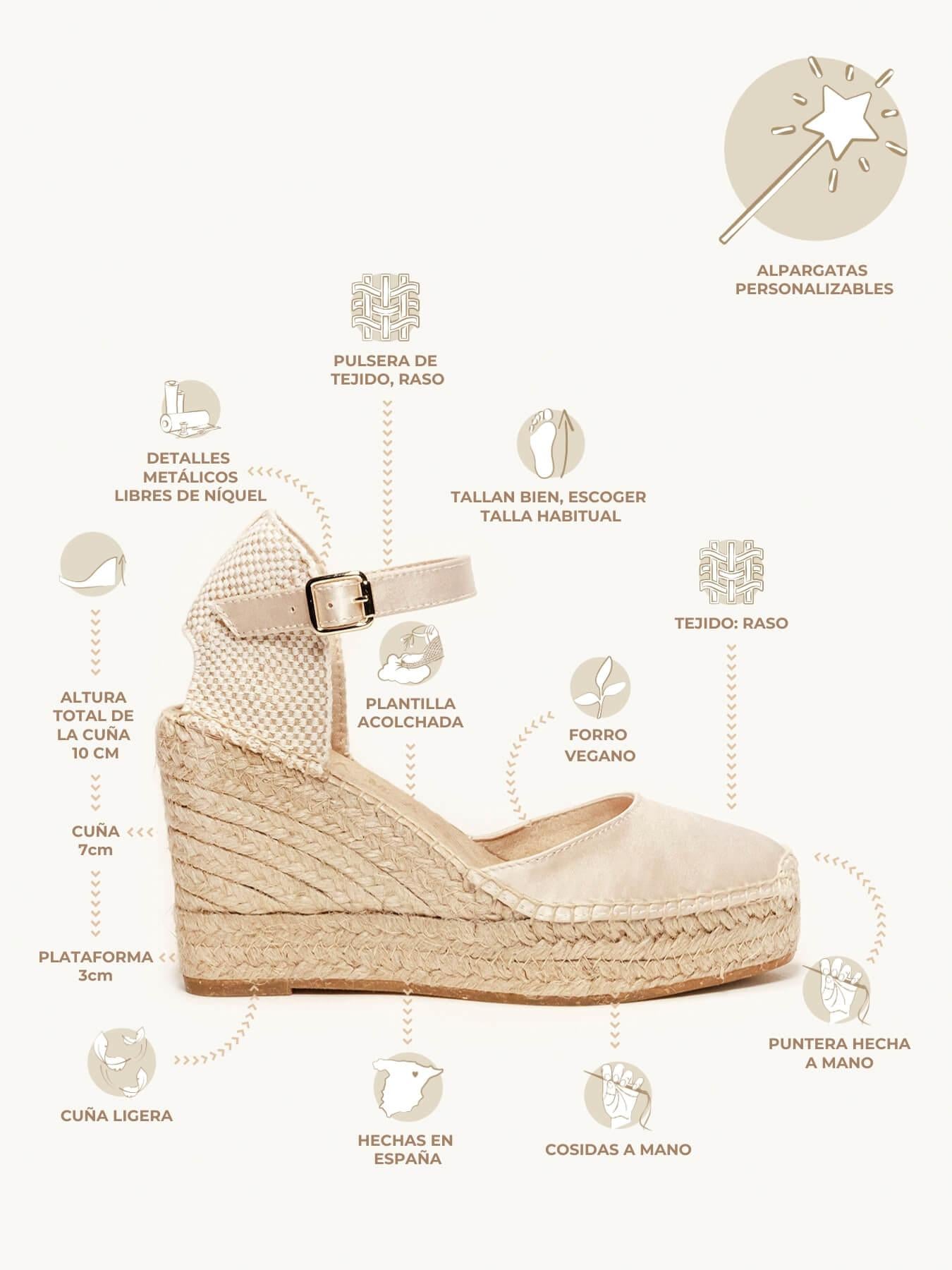 Alpargata Cuña Alta: 10 cm totales (3 de plataforma + 7 de cuña).
