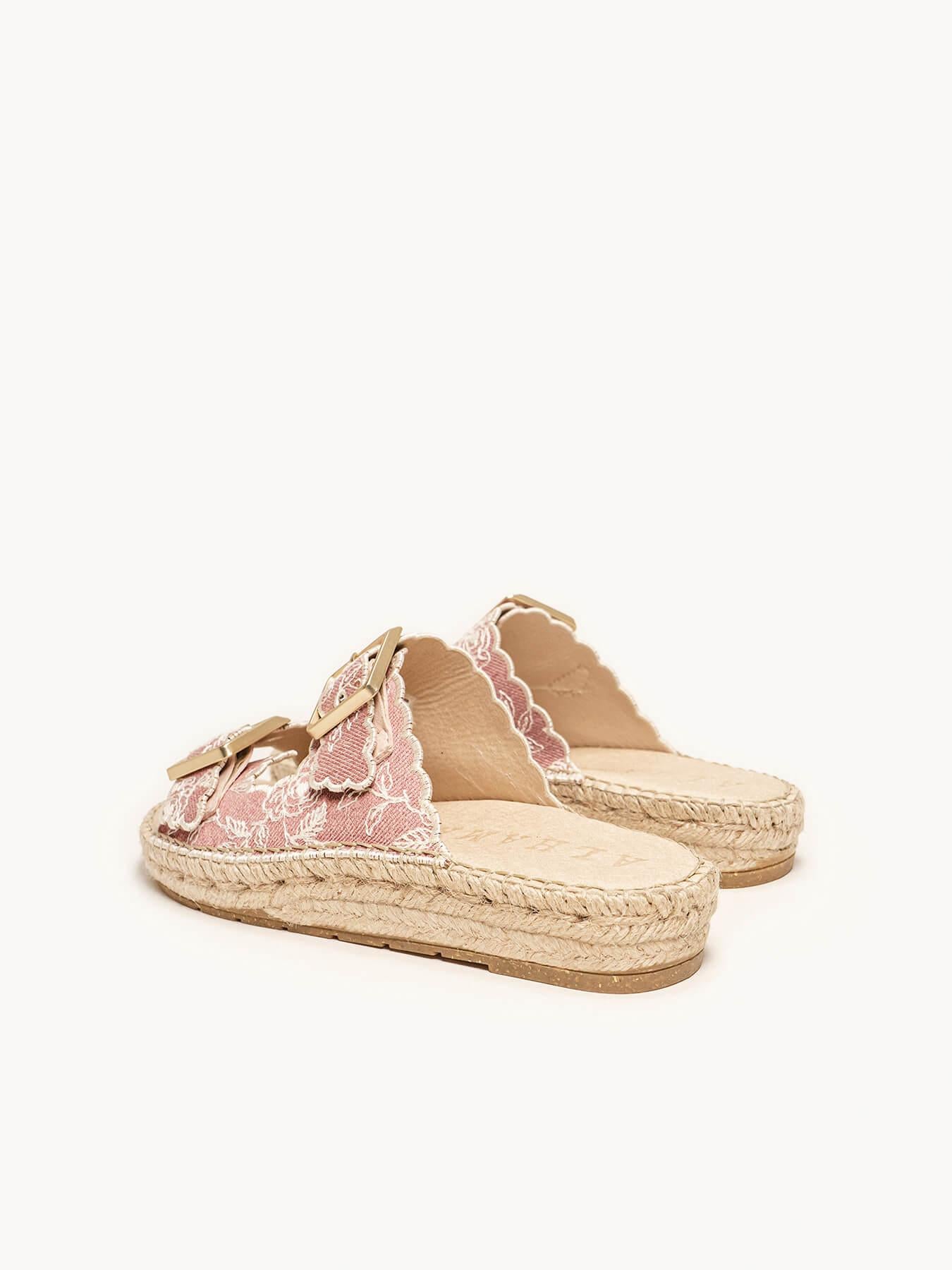 - El tejido de la alpargata Girasol es de algodón y poliéster reciclado.