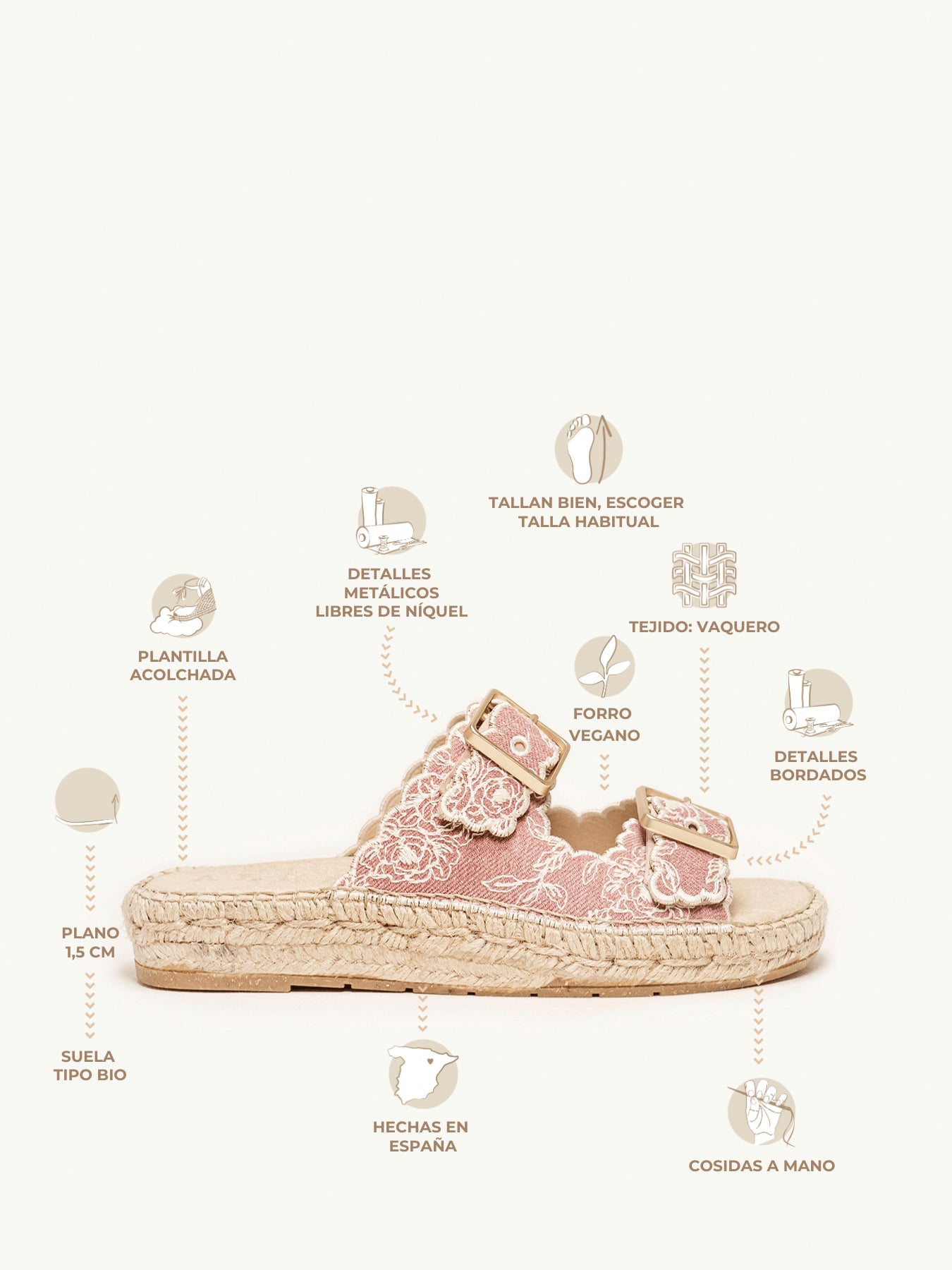 La alpargata bio Girasol, es un modelo ideal para tu día a día. Una sandalia plana con hebillas perfecta para ir cómoda y chic con tus looks más veraniegos.