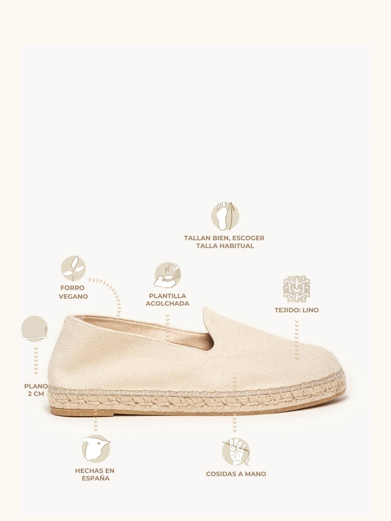 El modelo Jacinto es una alpargata de mujer ideal para el día a día. Una alpargata plana perfecta para mujeres que quieran ir cómodas y chic en sus looks más veraniegos