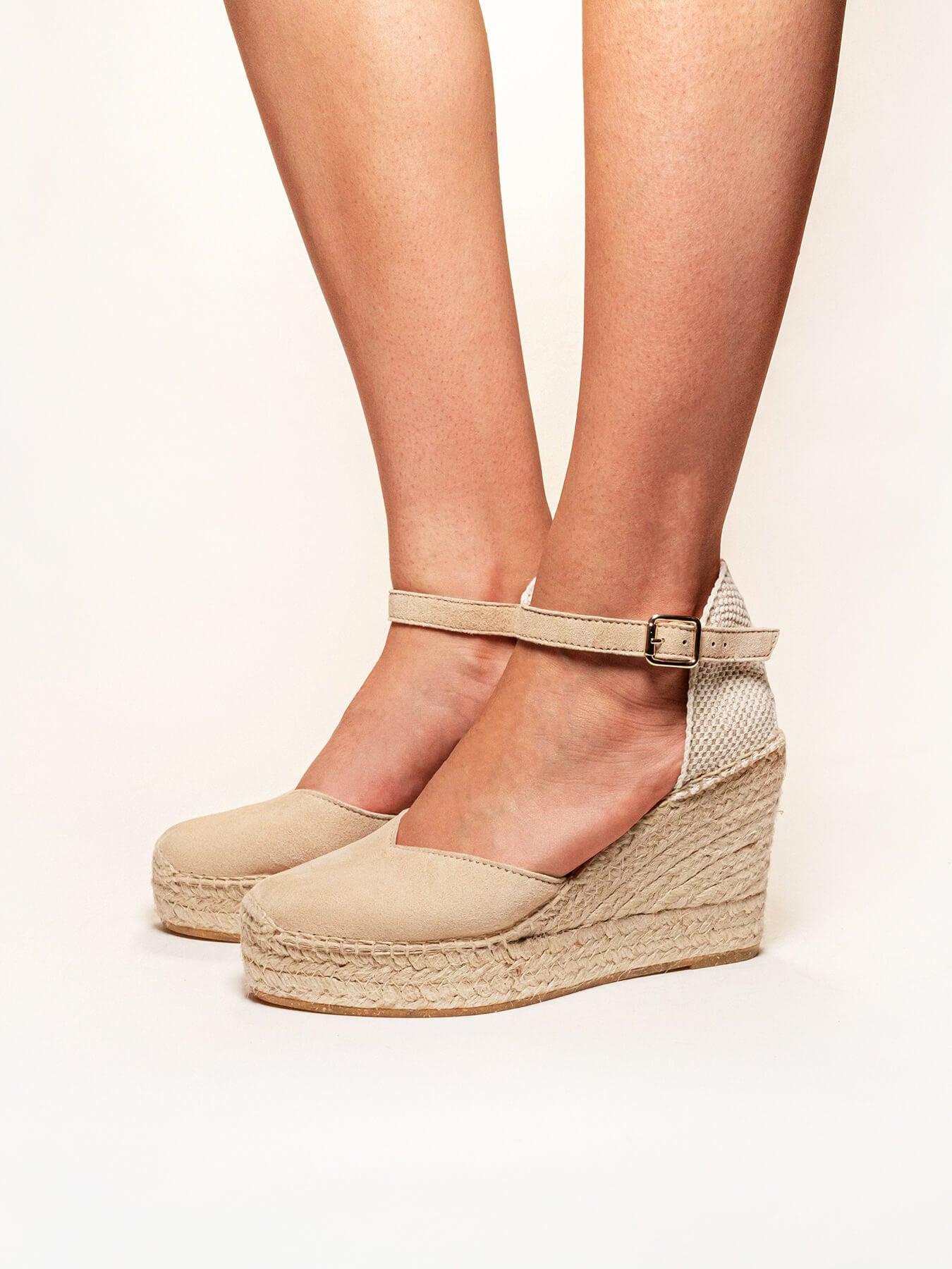 - Cuña de trenza de Yute natural con suela de goma reciclada, mezclada con fibras naturales.