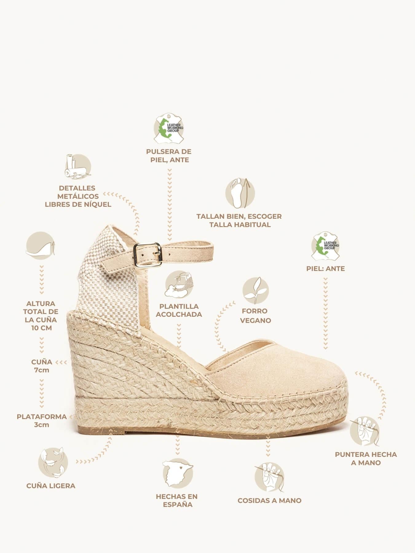 Alpargata Cuña Alta: 10 cm totales (3 de plataforma + 7 de cuña).