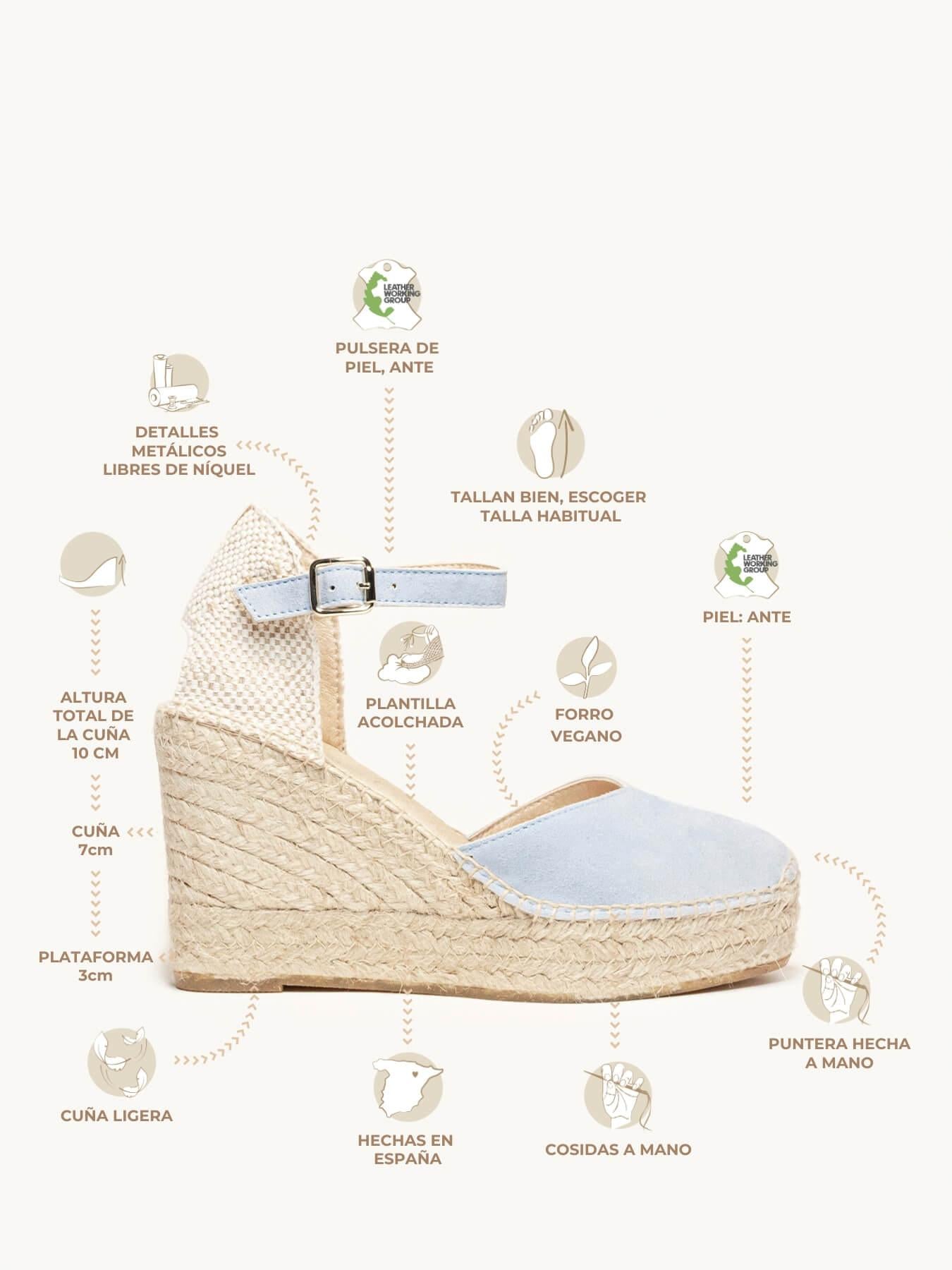 Alpargata Cuña Alta: 10 cm totales (3 de plataforma + 7 de cuña).