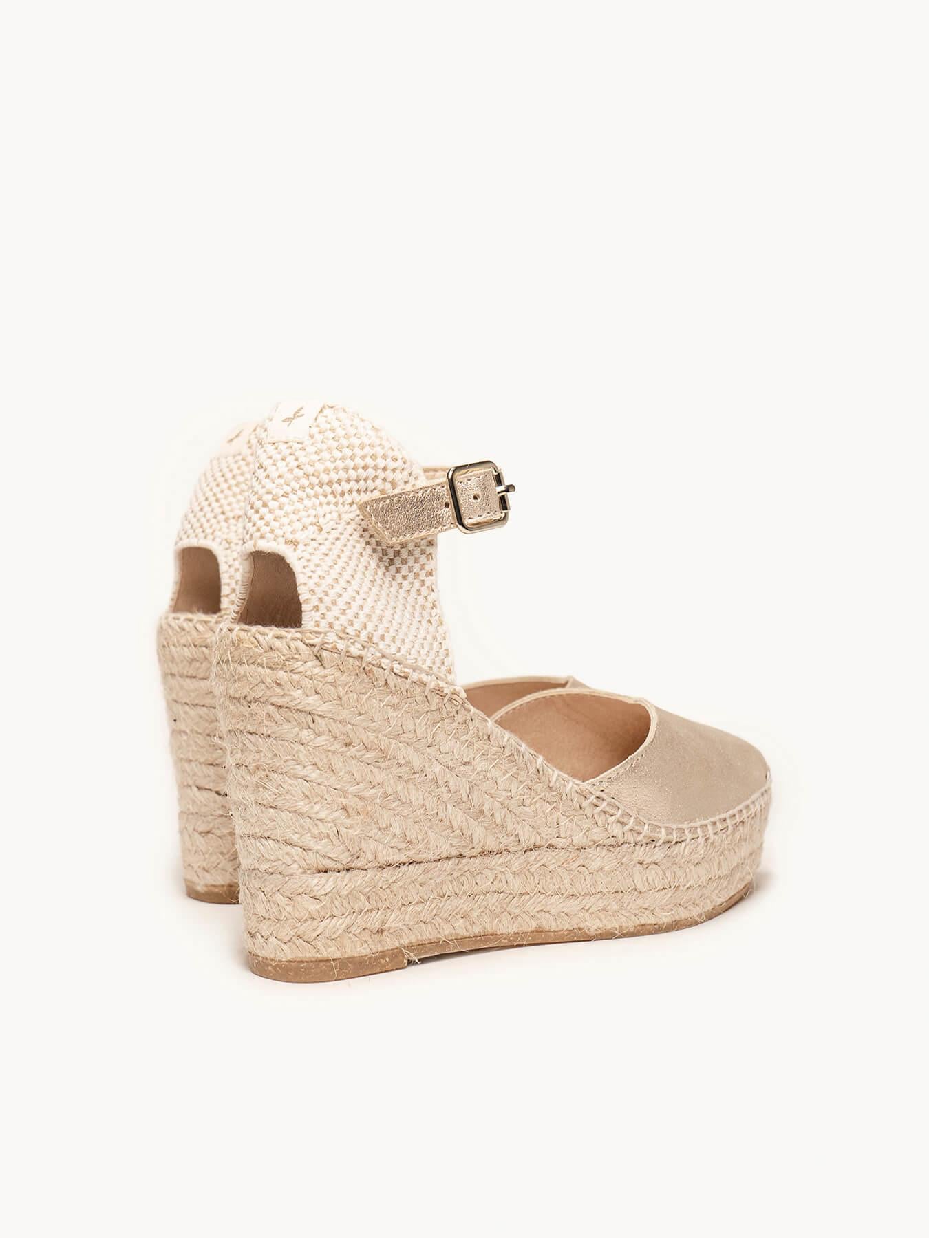 - Cuña de trenza de Yute natural con suela de goma reciclada, mezclada con fibras naturales.