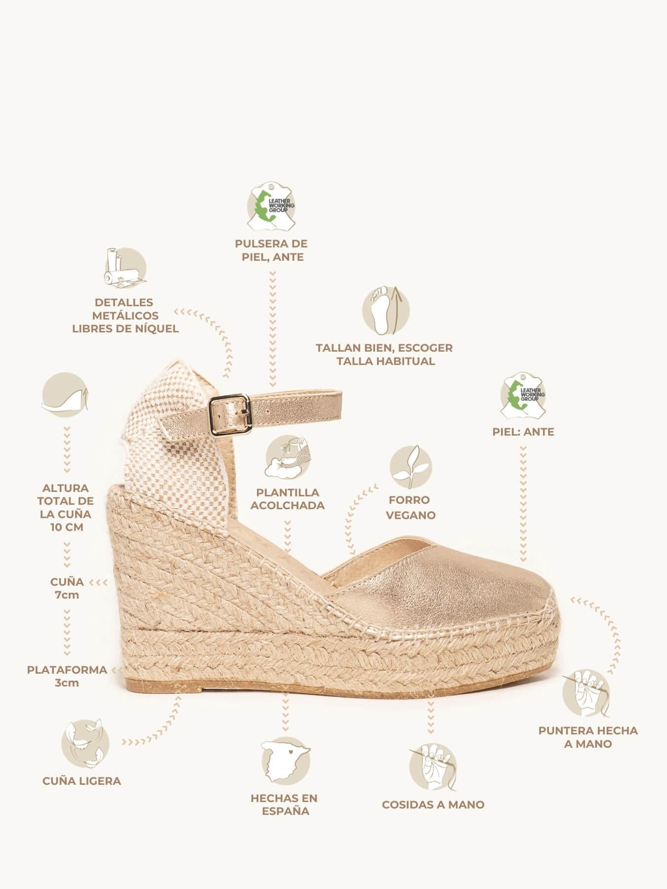 Alpargata Cuña Alta: 10 cm totales (3 de plataforma + 7 de cuña).