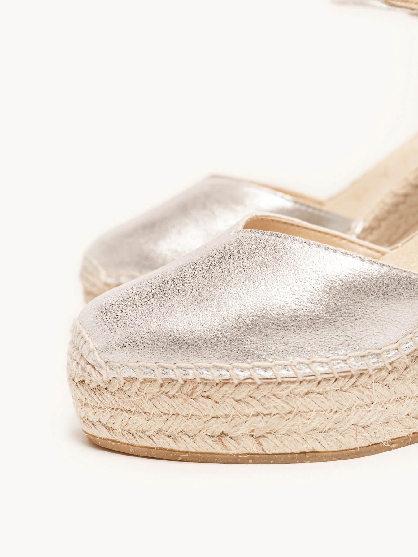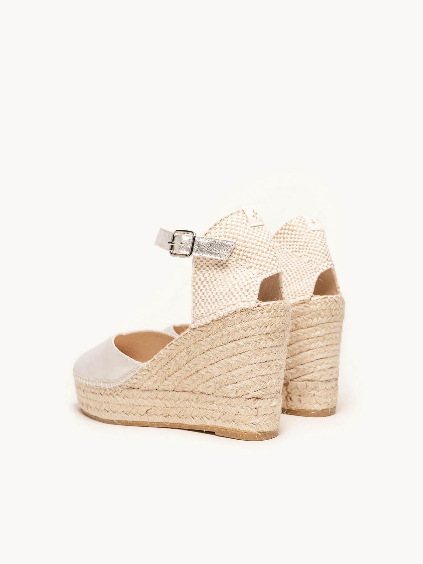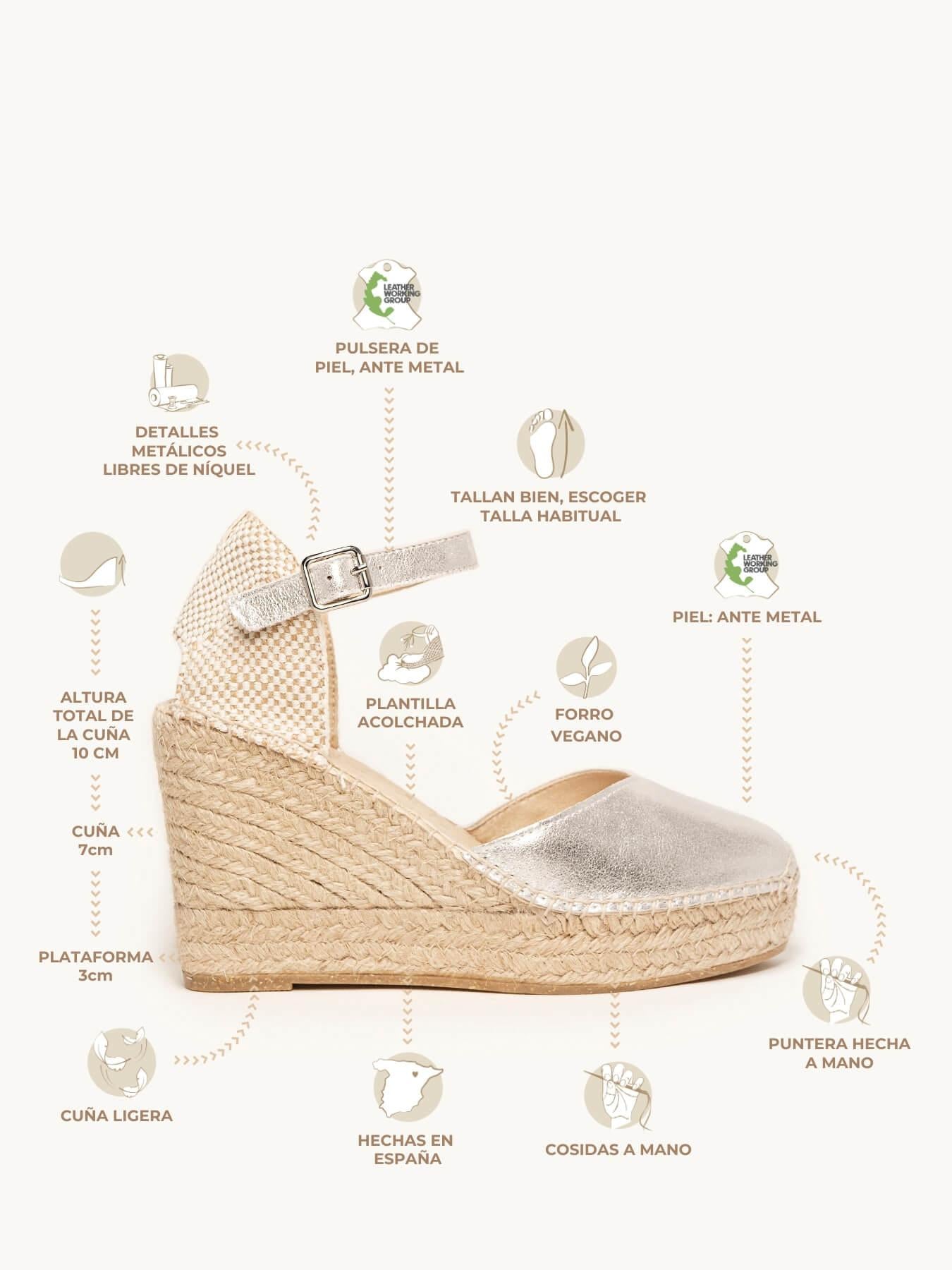 - Cuña de trenza de Yute natural con suela de goma reciclada, mezclada con fibras naturales.