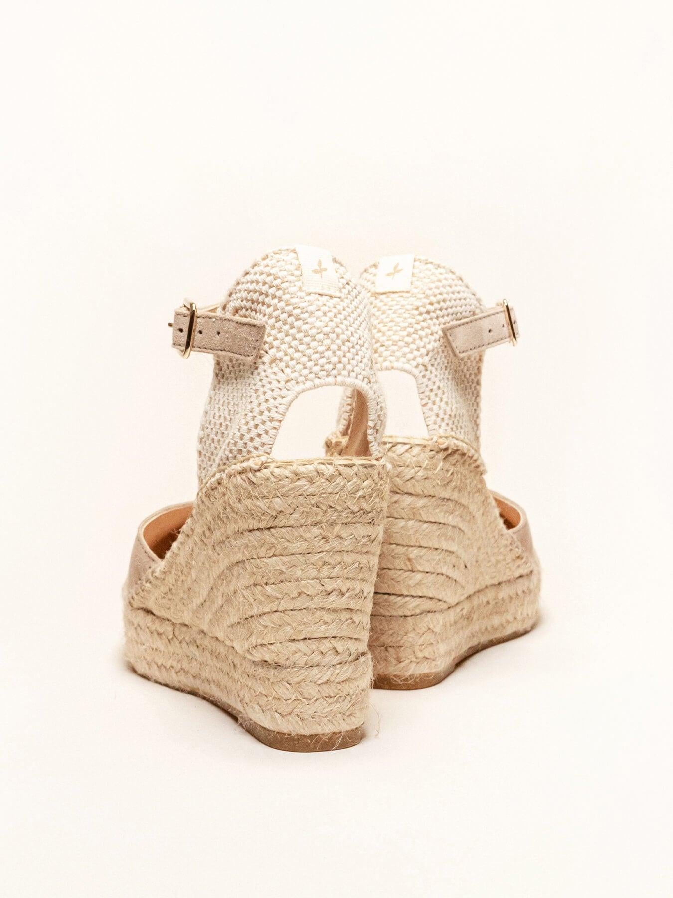 - Cuña de trenza de Yute natural con suela de goma reciclada, mezclada con fibras naturales.