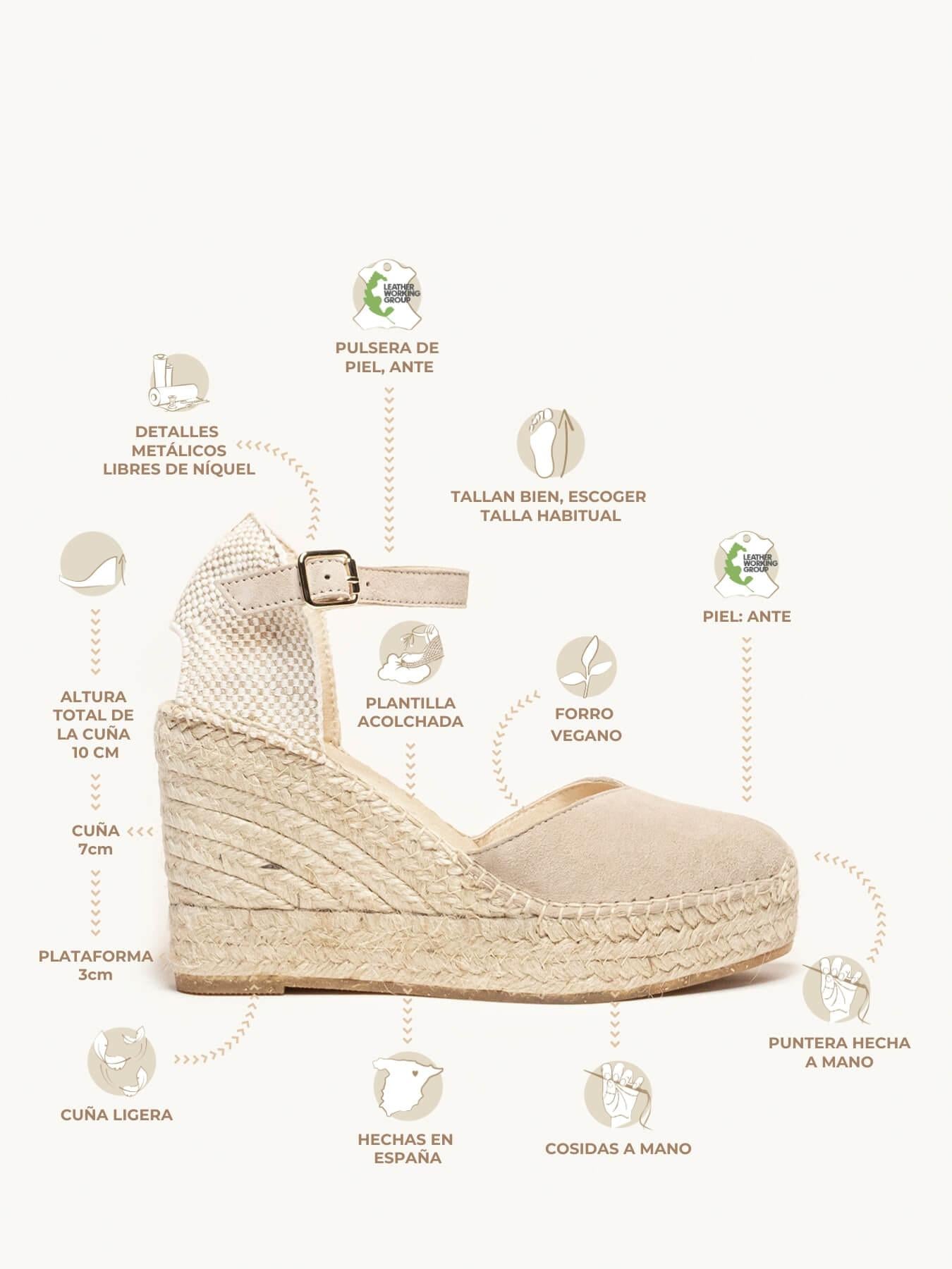 Alpargata Cuña Alta: 10 cm totales (3 de plataforma + 7 de cuña).