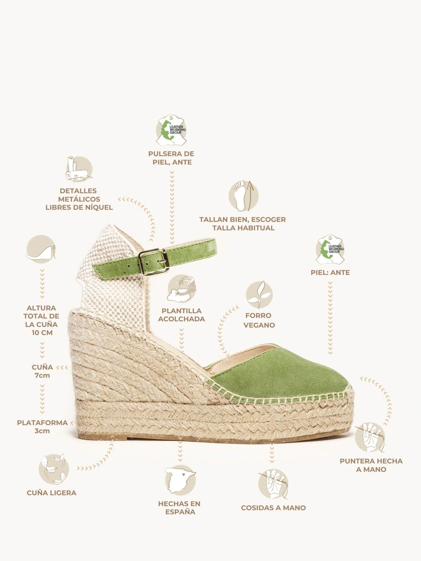 - El Ante de la alpargata Jara está certificado por el Leather Working Group (una organización que promueve prácticas ambientales sostenibles)