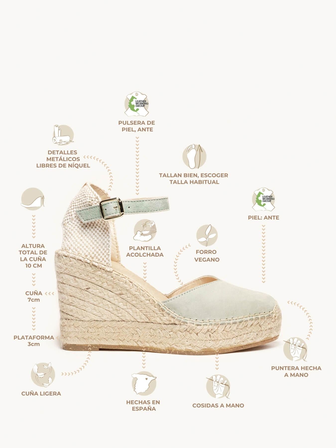 - El Ante de la alpargata Jara está certificado por el Leather Working Group (una organización que promueve prácticas ambientales sostenibles)
