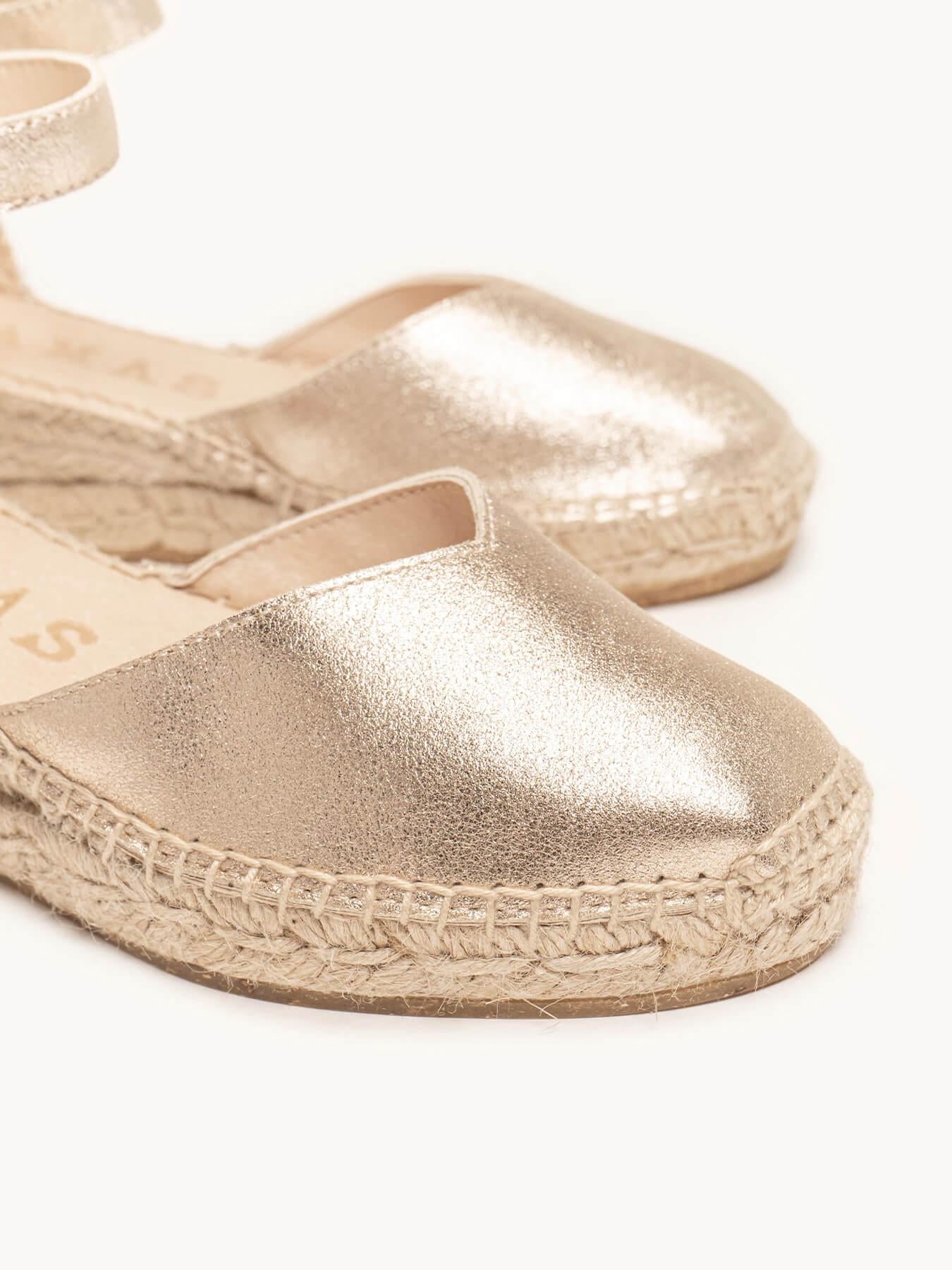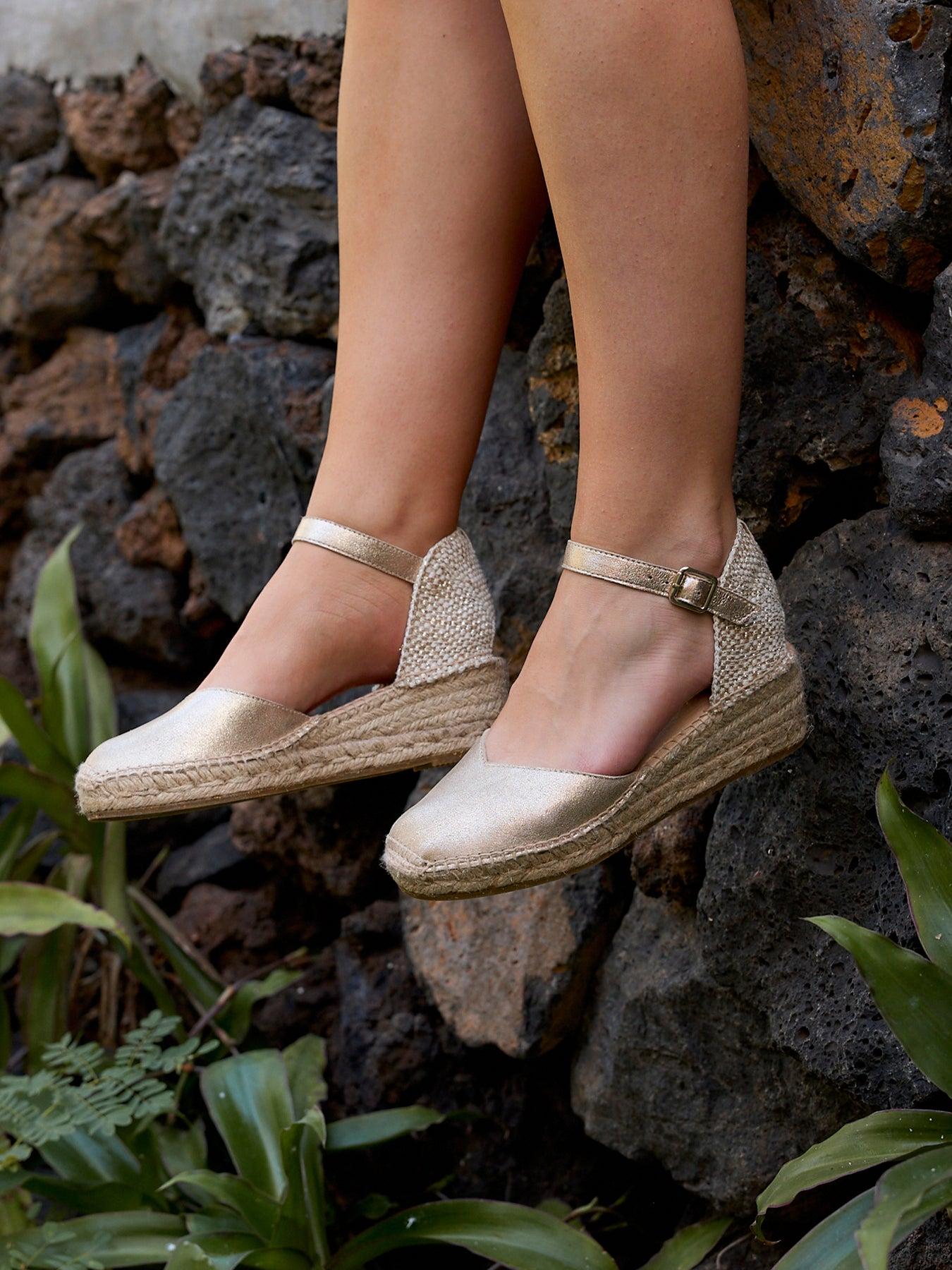 La alpargata de cuña baja con pulsera Jara, es uno de nuestros favoritos. Una alpargata con pulsera y escote corazón muy versátil, ideal para el día a día y también para darle un toque muy chic a los looks más especiales. Las alpargatas con cuña y pulsera se sujetan muy bien al tobillo, irás súper cómoda durante todo el día.