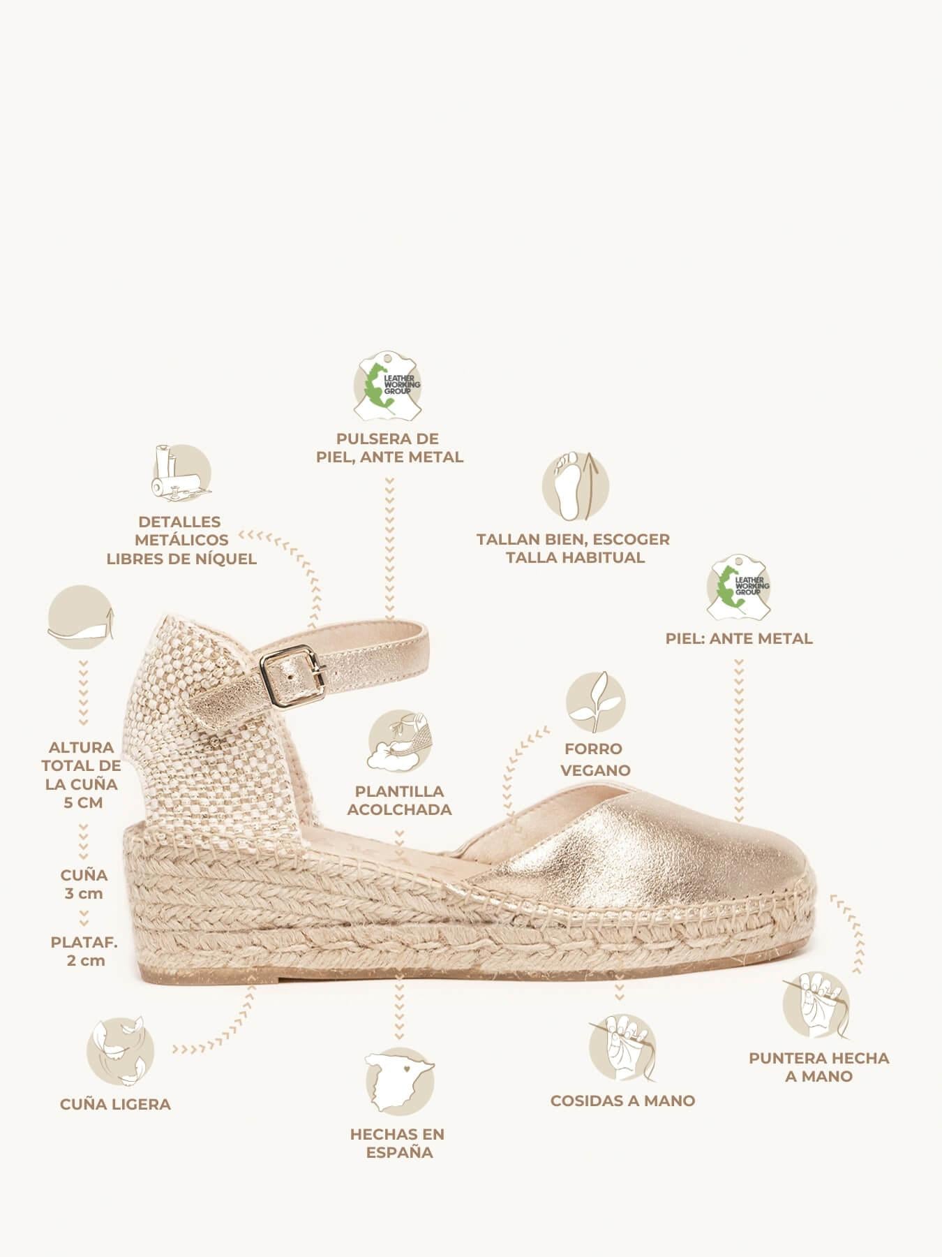 - El Ante Metal de la alpargata Jara está certificado por el Leather Working Group (una organización que promueve prácticas ambientales sostenibles)