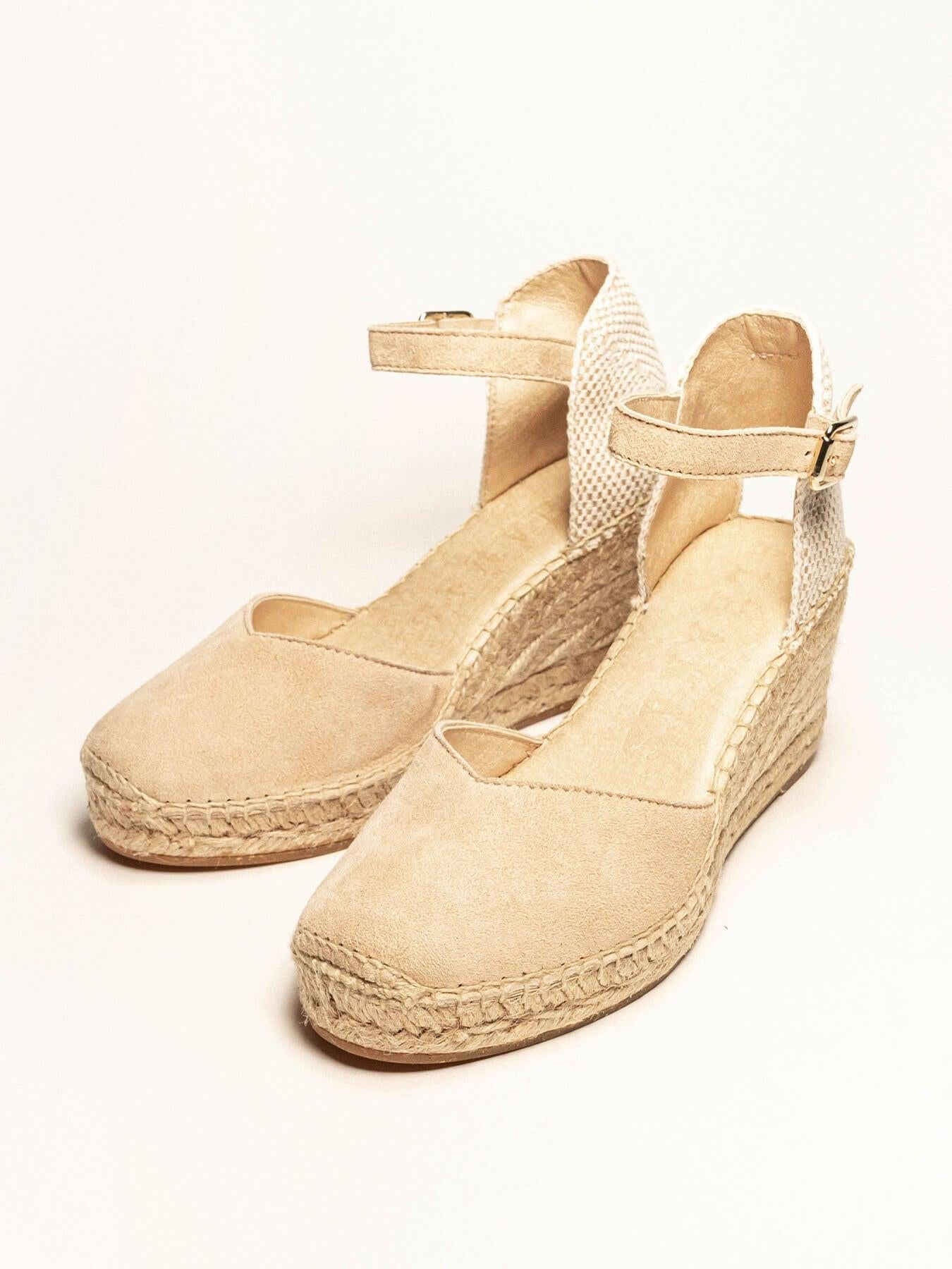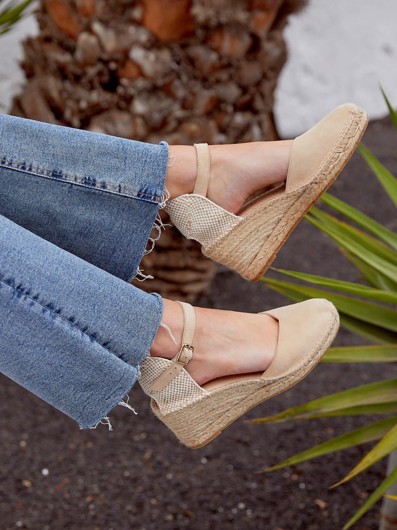 La alpargata de cuña media con pulsera Jara, es uno de nuestros favoritos. Una alpargata con pulsera y escote corazón muy versátil, ideal para el día a día y también para darle un toque muy chic a los looks más especiales. Las alpargatas con cuña y pulsera se sujetan muy bien al tobillo, irás súper cómoda durante todo el día.