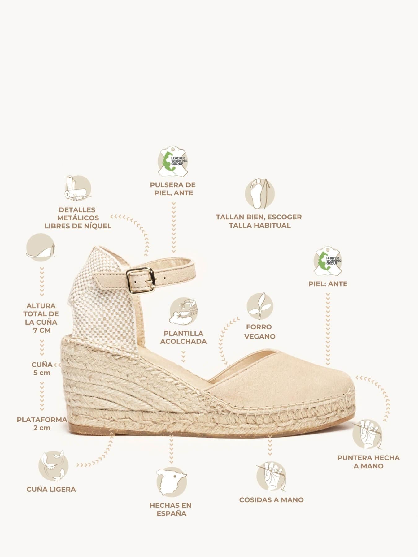 - El Ante de la alpargata Jara está certificado por el Leather Working Group (una organización que promueve prácticas ambientales sostenibles)