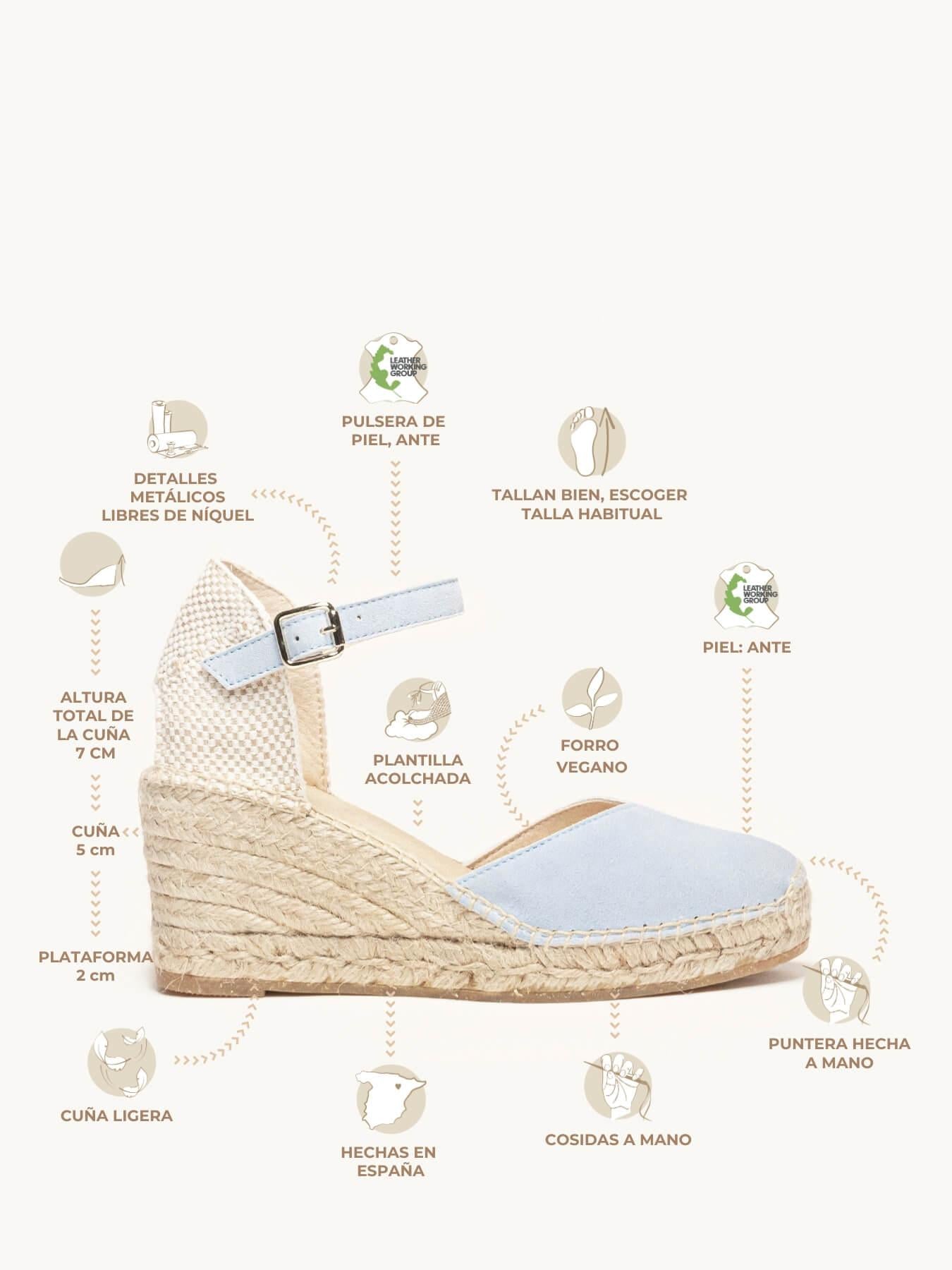 - El ante de la alpargata Jara está certificado por el Leather Working Group (una organización que promueve prácticas ambientales sostenibles)