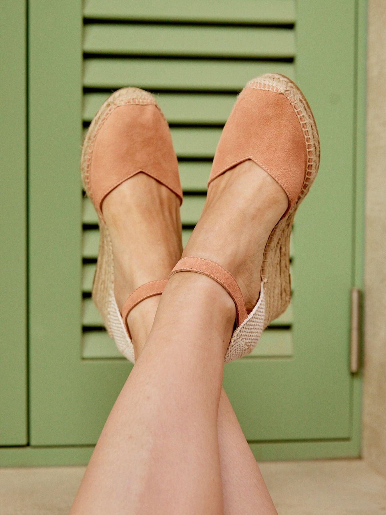 La alpargata de cuña media con pulsera Jara, es uno de nuestros favoritos. Una alpargata con pulsera y escote corazón muy versátil, ideal para el día a día y también para darle un toque muy chic a los looks más especiales. Las alpargatas con cuña y pulsera se sujetan muy bien al tobillo, irás súper cómoda durante todo el día.