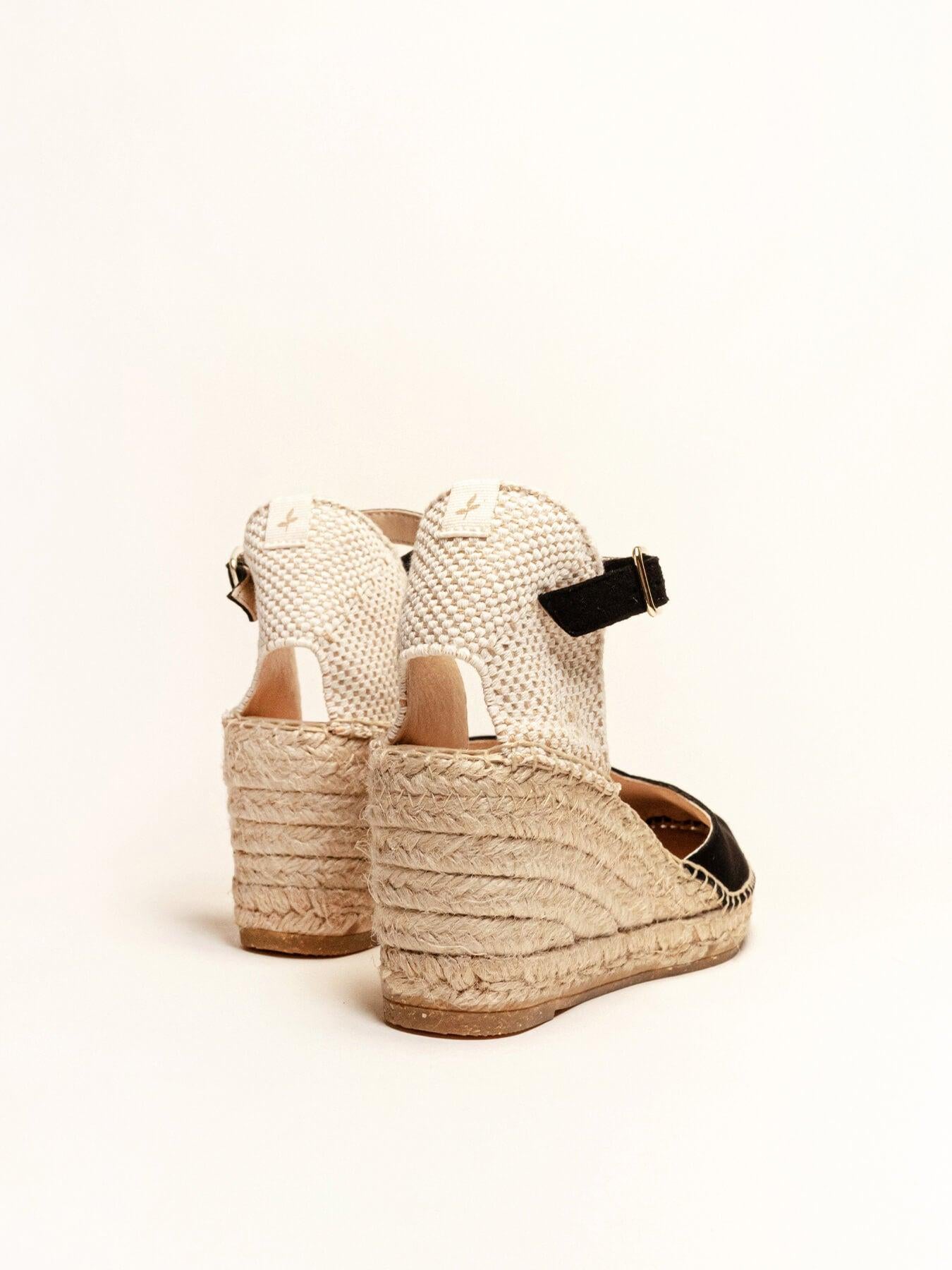 - Cuña de trenza de yute natural con suela de goma reciclada, mezclada con fibras naturales