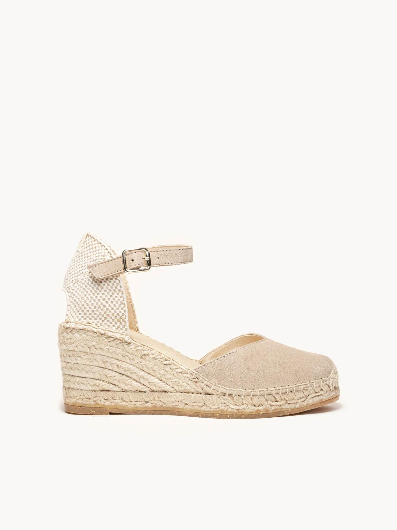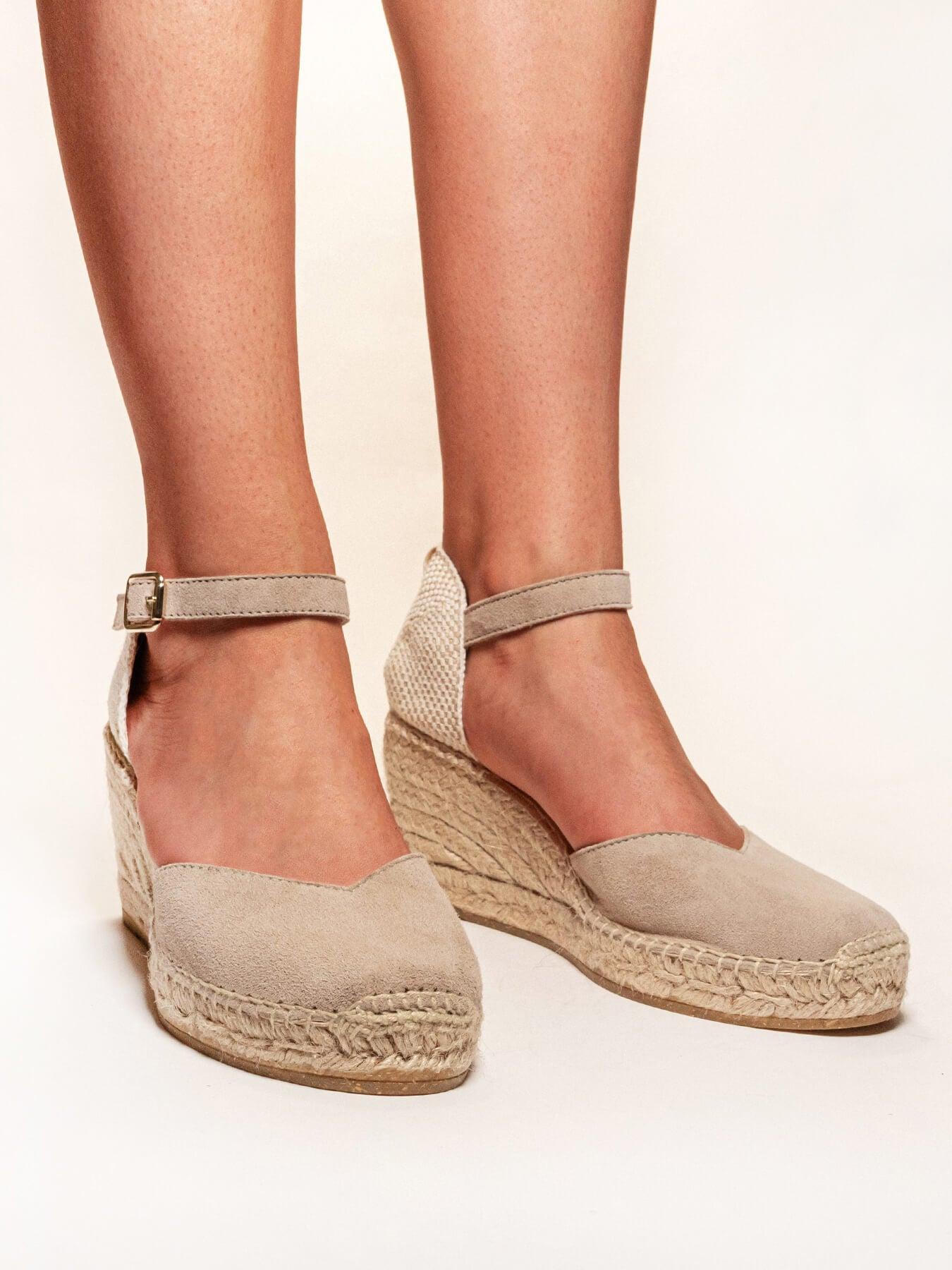 La alpargata de cuña media con pulsera Jara, es uno de nuestros favoritos. Una alpargata con pulsera y escote corazón muy versátil, ideal para el día a día y también para darle un toque muy chic a los looks más especiales. Las alpargatas con cuña y pulsera se sujetan muy bien al tobillo, irás súper cómoda durante todo el día.