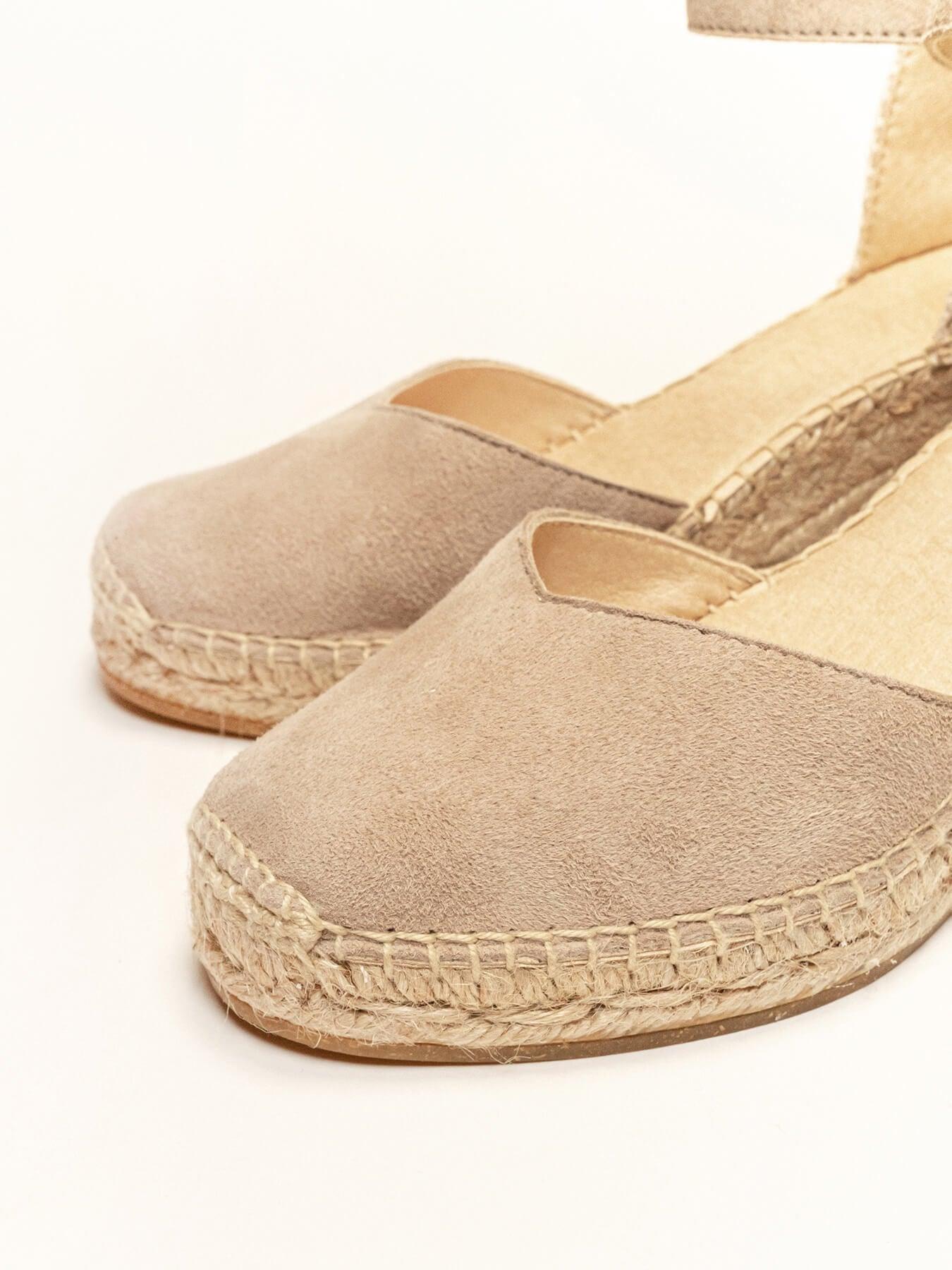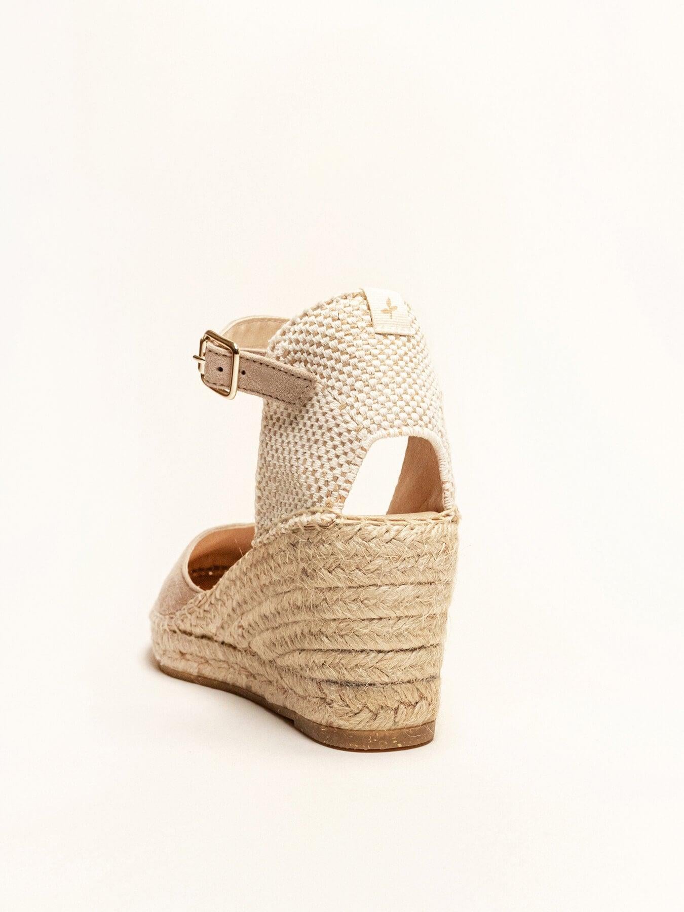 - Cuña de trenza de Yute natural con suela de goma reciclada, mezclada con fibras naturales.