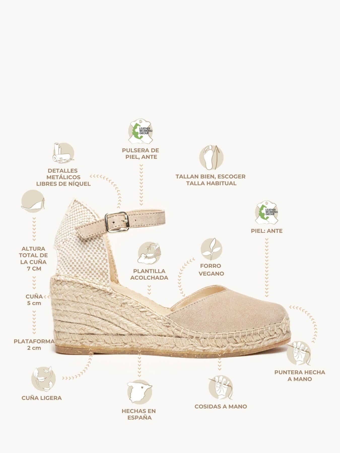 - El Ante de la alpargata Jara está certificado por el Leather Working Group (una organización que promueve prácticas ambientales sostenibles)