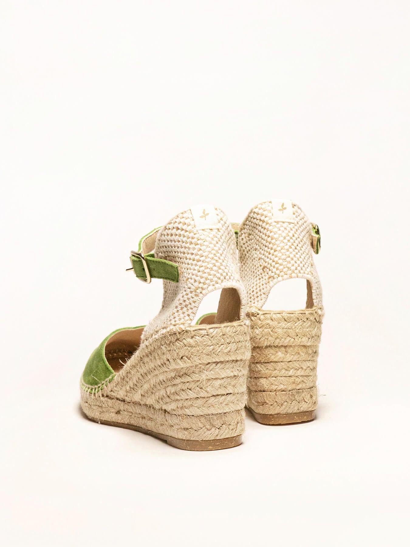 - Cuña de trenza de Yute natural con suela de goma reciclada, mezclada con fibras naturales.