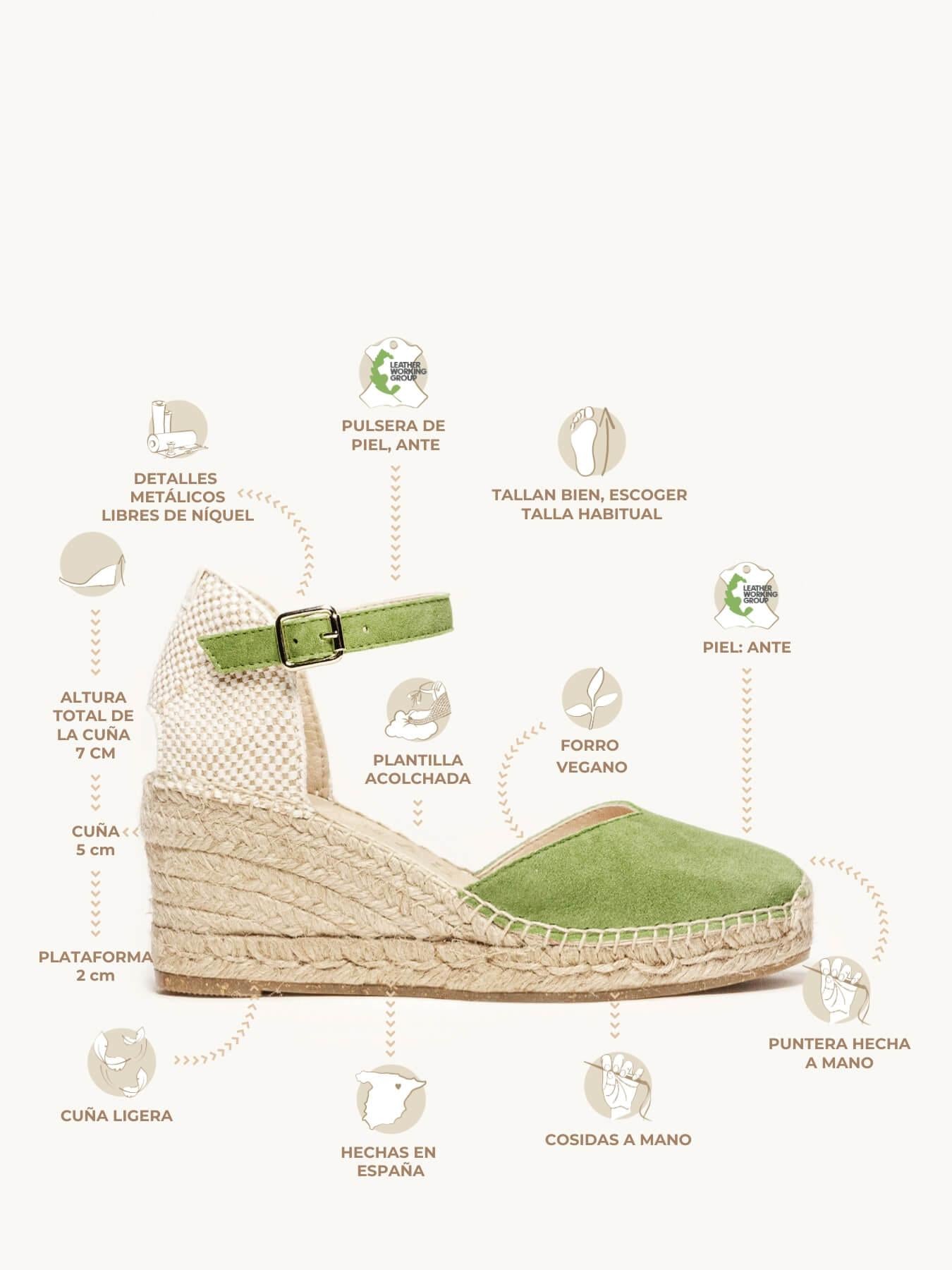 - El Ante de la alpargata Jara está certificado por el Leather Working Group (una organización que promueve prácticas ambientales sostenibles)
