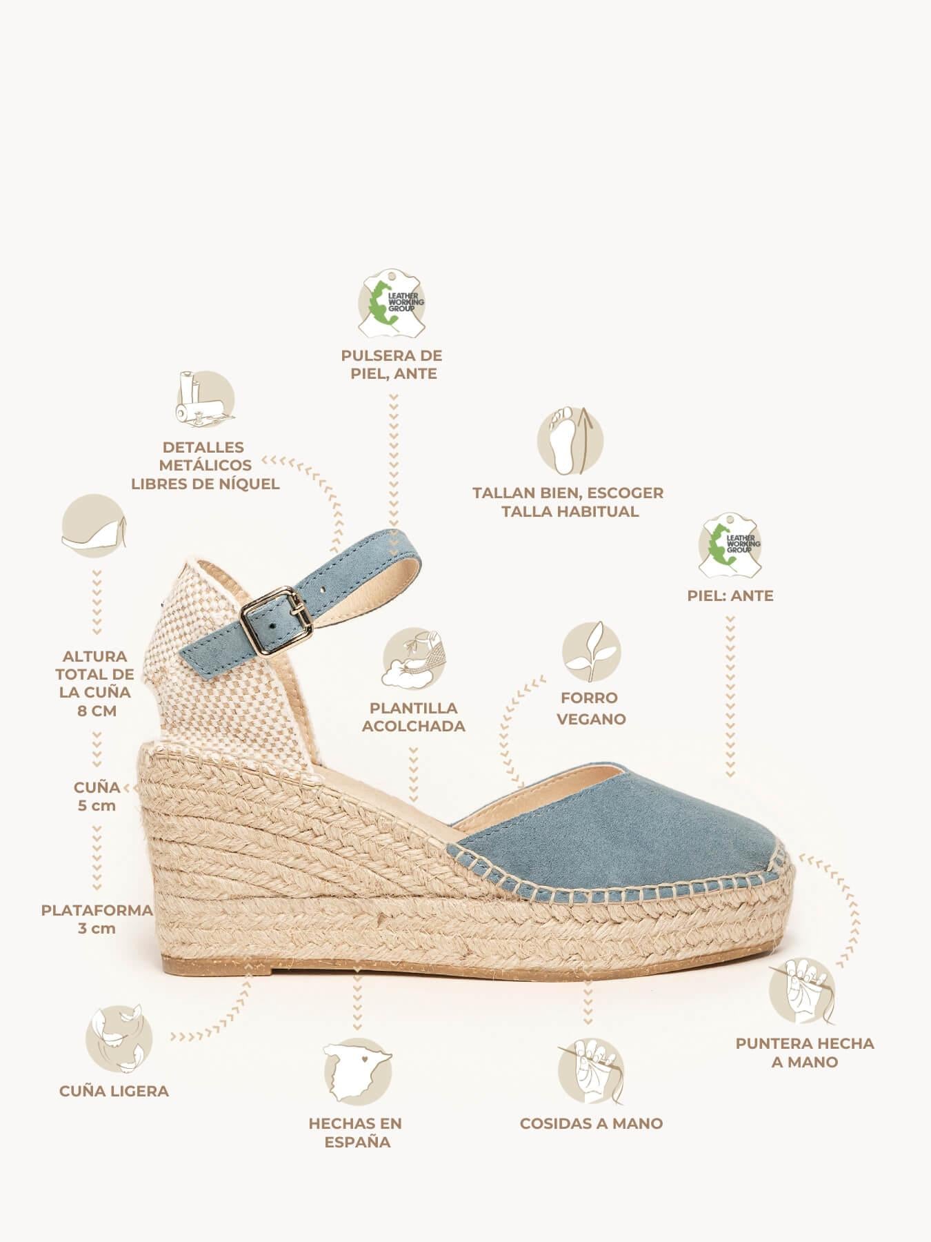 - El Ante de la alpargata Jara está certificado por el Leather Working Group (una organización que promueve prácticas ambientales sostenibles)