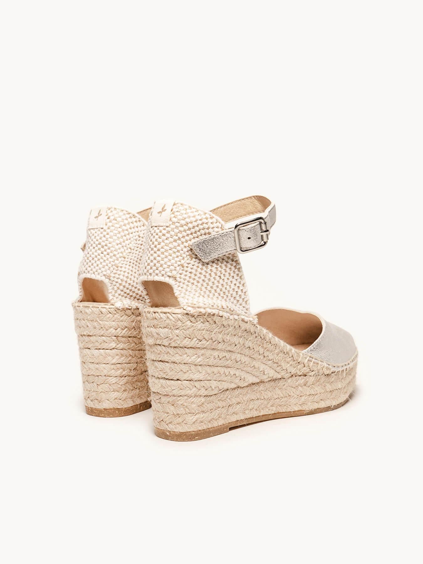 - Cuña de trenza de Yute natural con suela de goma reciclada, mezclada con fibras naturales.