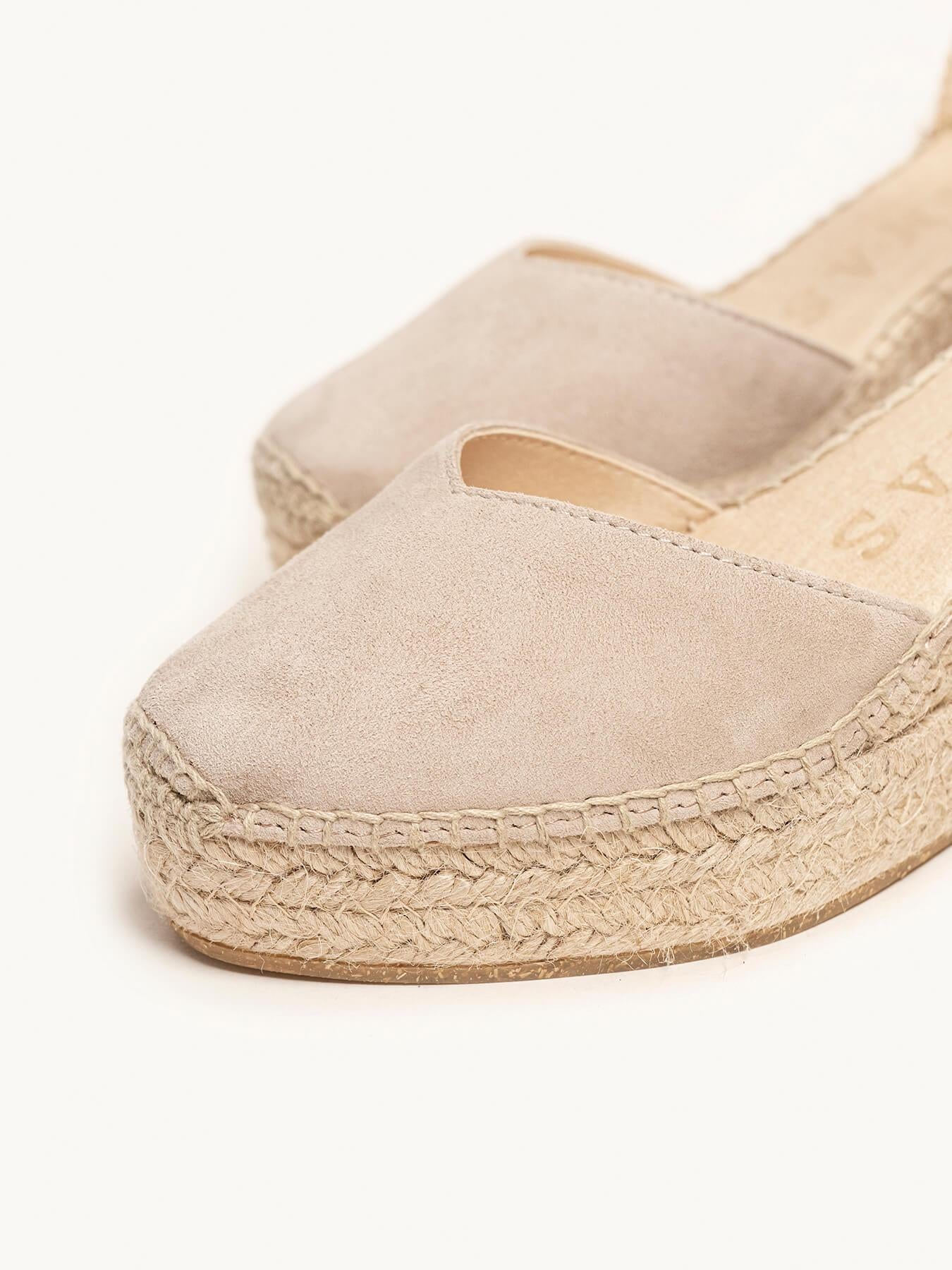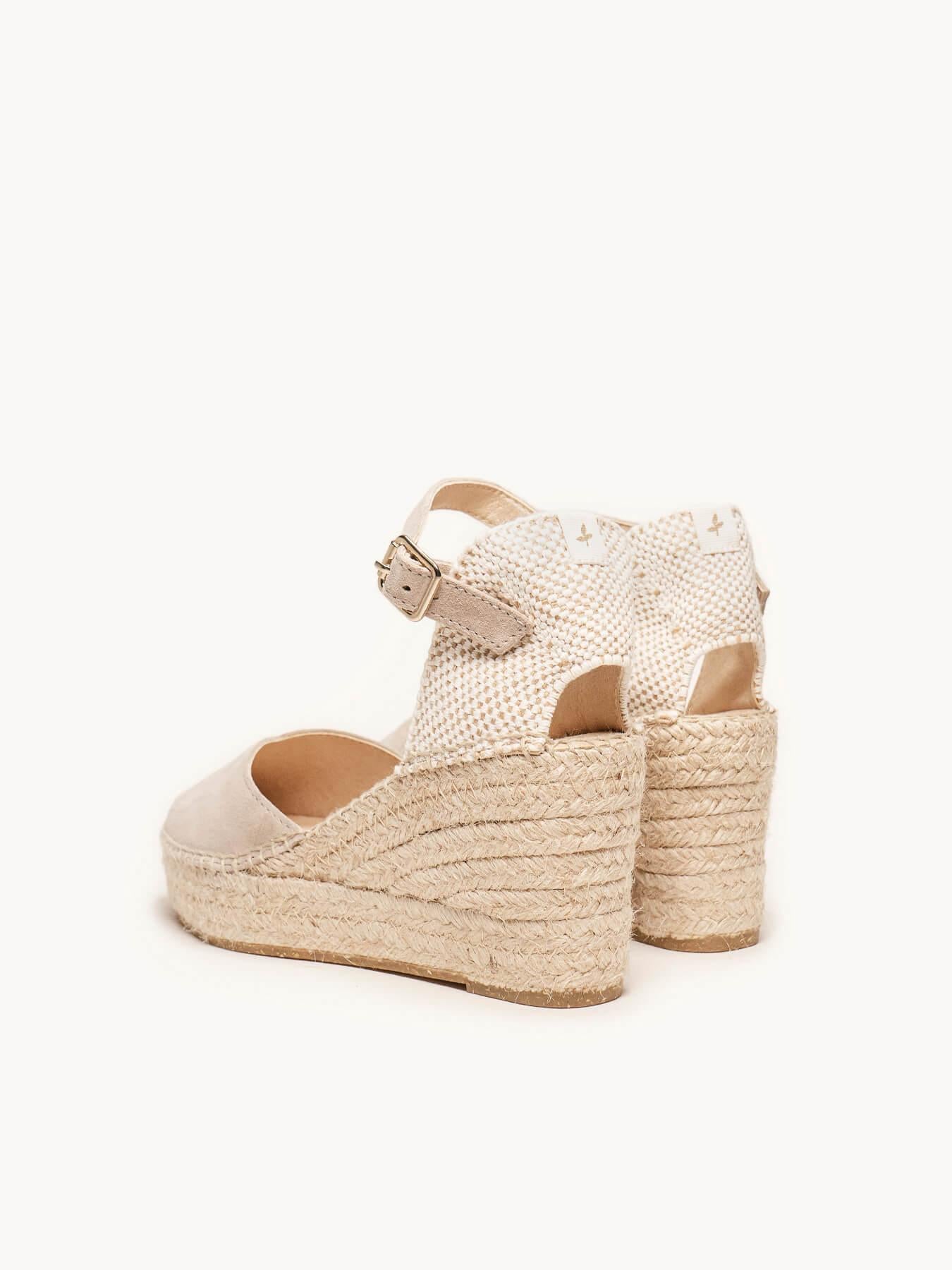 - Cuña de trenza de Yute natural con suela de goma reciclada, mezclada con fibras naturales.