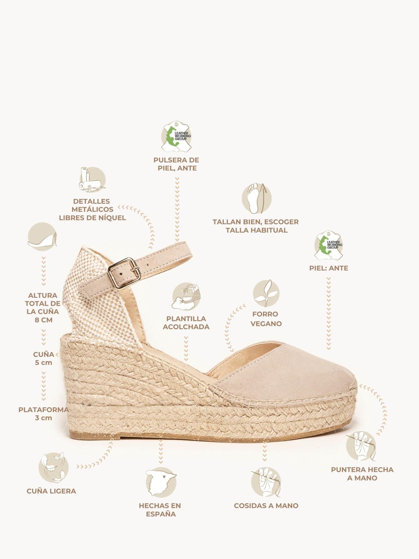 - El Ante de la alpargata Jara está certificado por el Leather Working Group (una organización que promueve prácticas ambientales sostenibles)