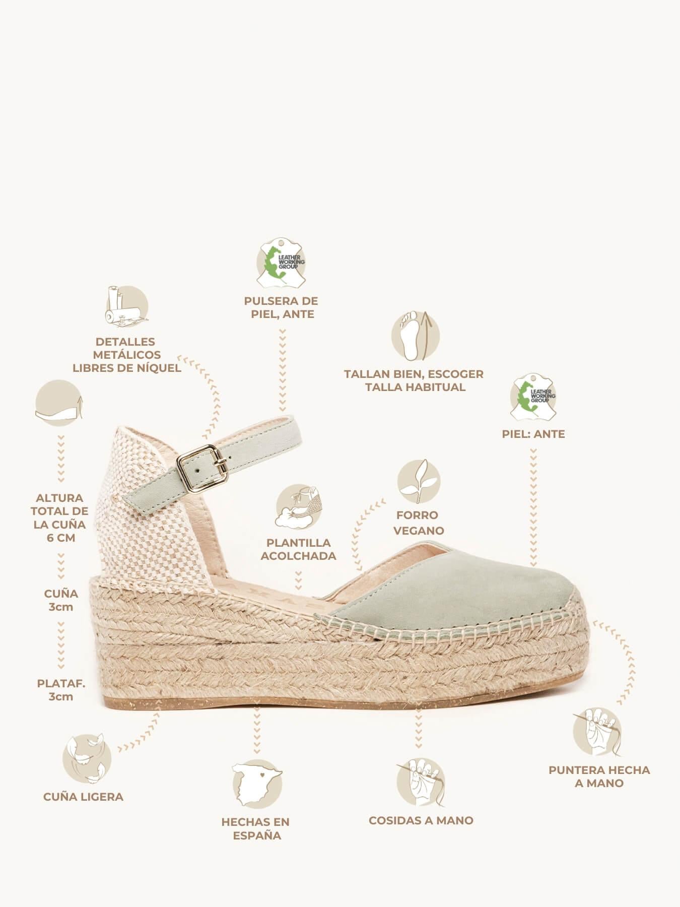 - El ante de la alpargata Jara está certificado por el Leather Working Group (una organización que promueve prácticas ambientales sostenibles)