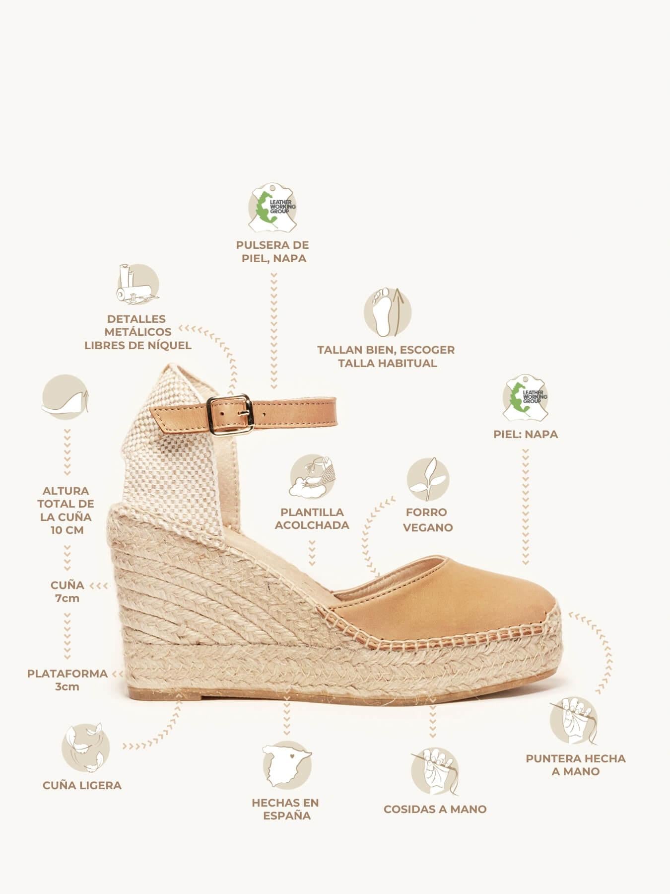 Alpargata Cuña Alta: 10 cm totales (3 de plataforma + 7 de cuña).
