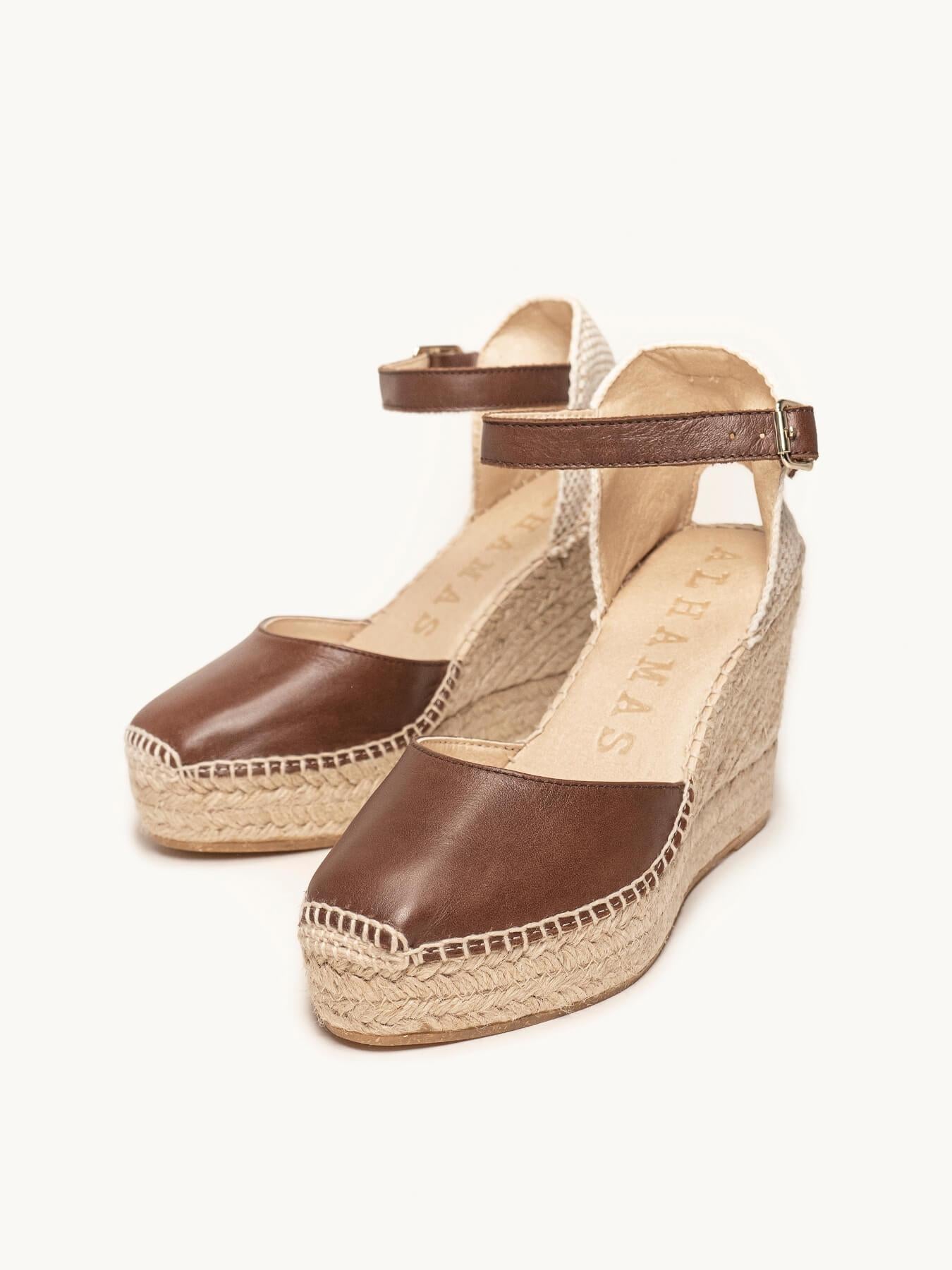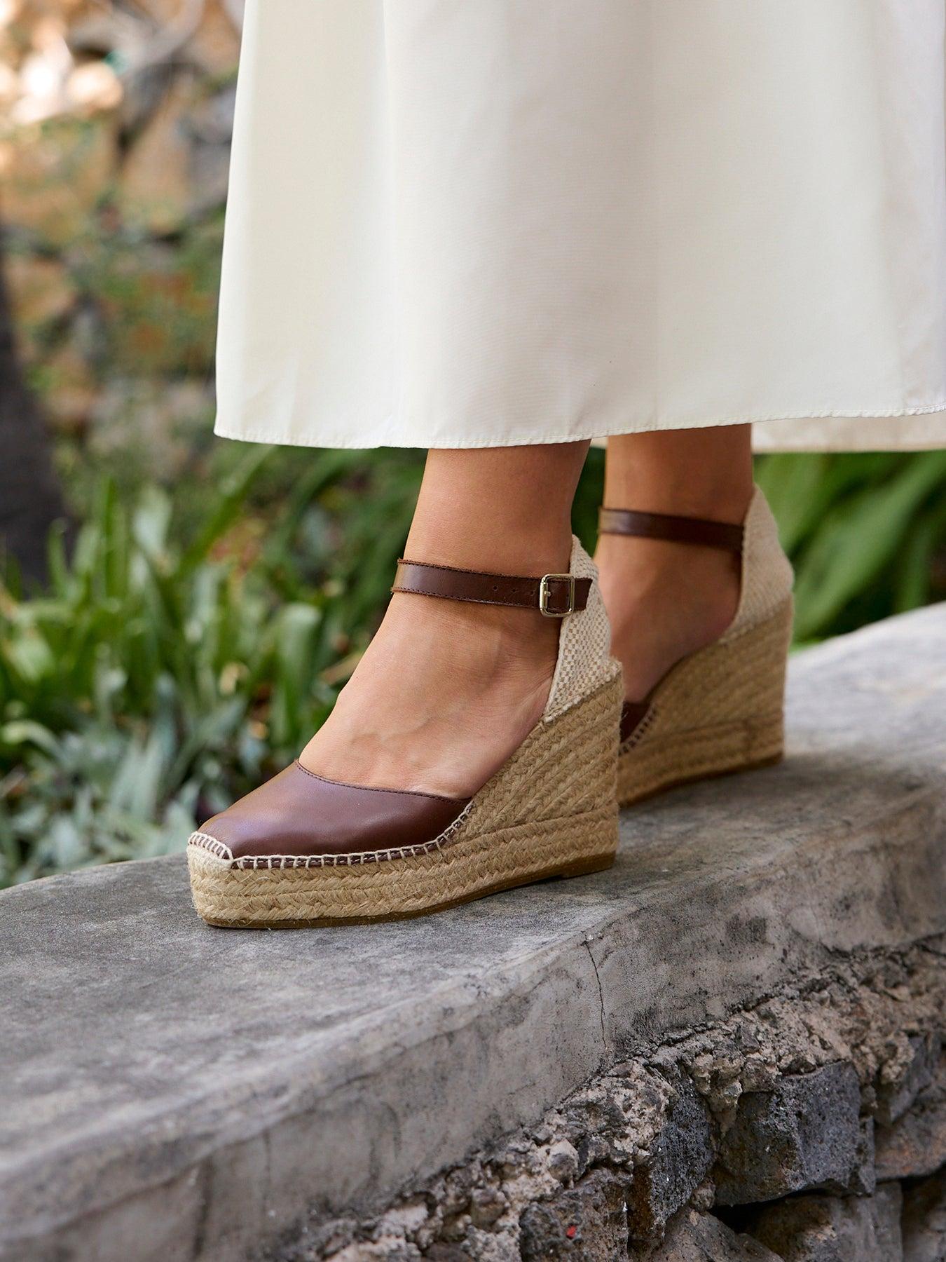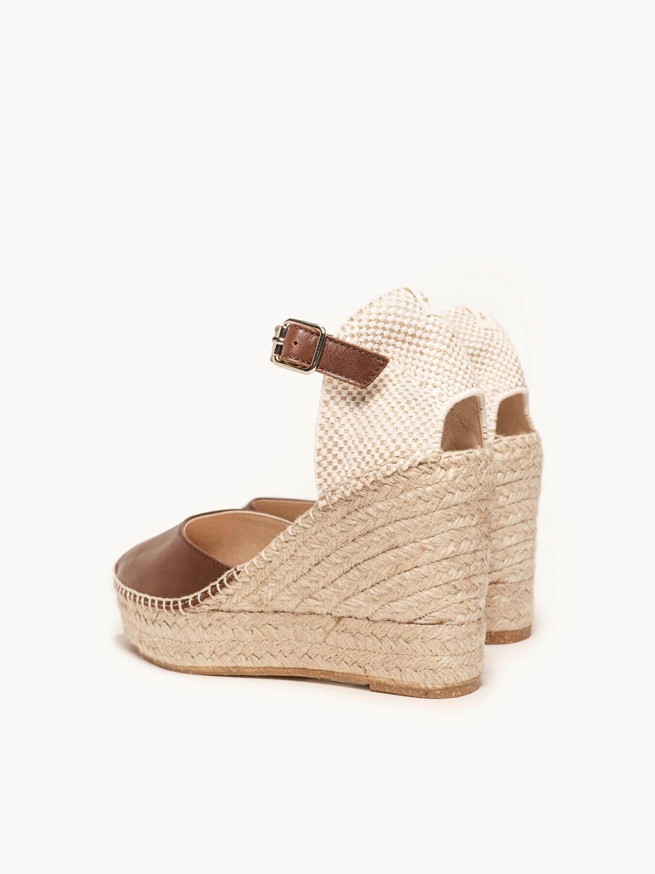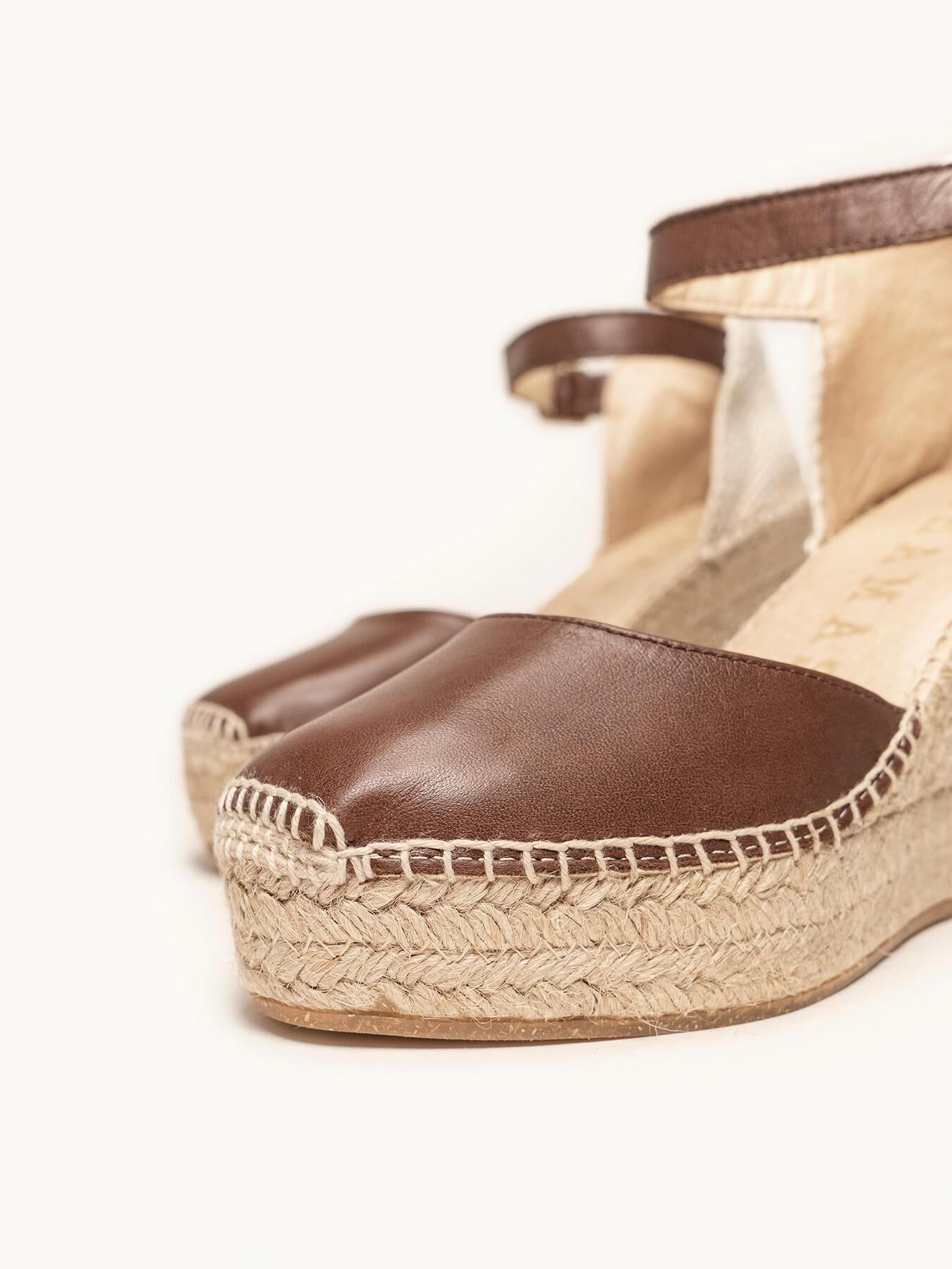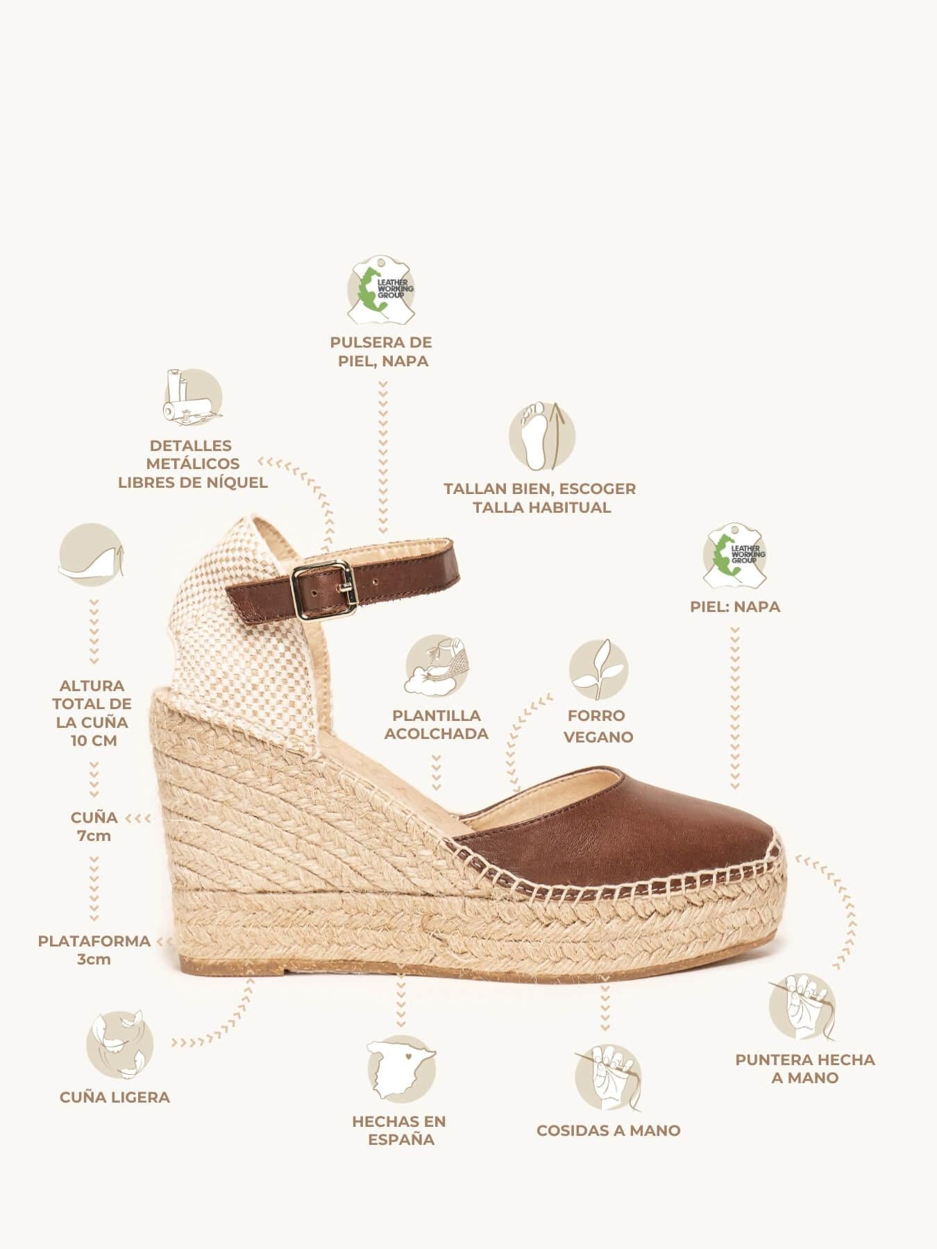 - Cuña de trenza de Yute natural con suela de goma reciclada mezclada con fibras naturales.